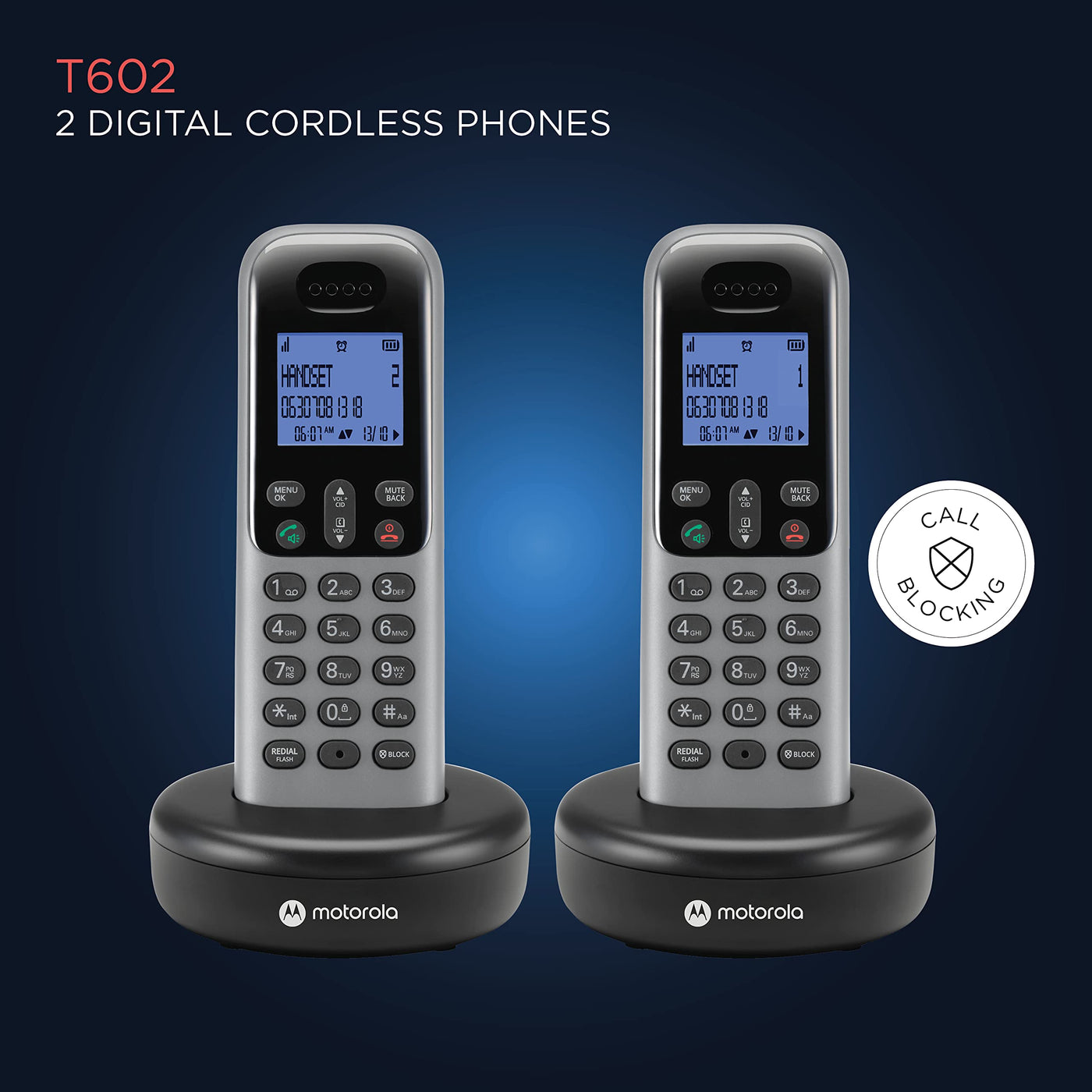 Motorola Voice T602 Cordless Phone System W/2 Digital Handsets, Speakerphone, And Call Block Dark Grey