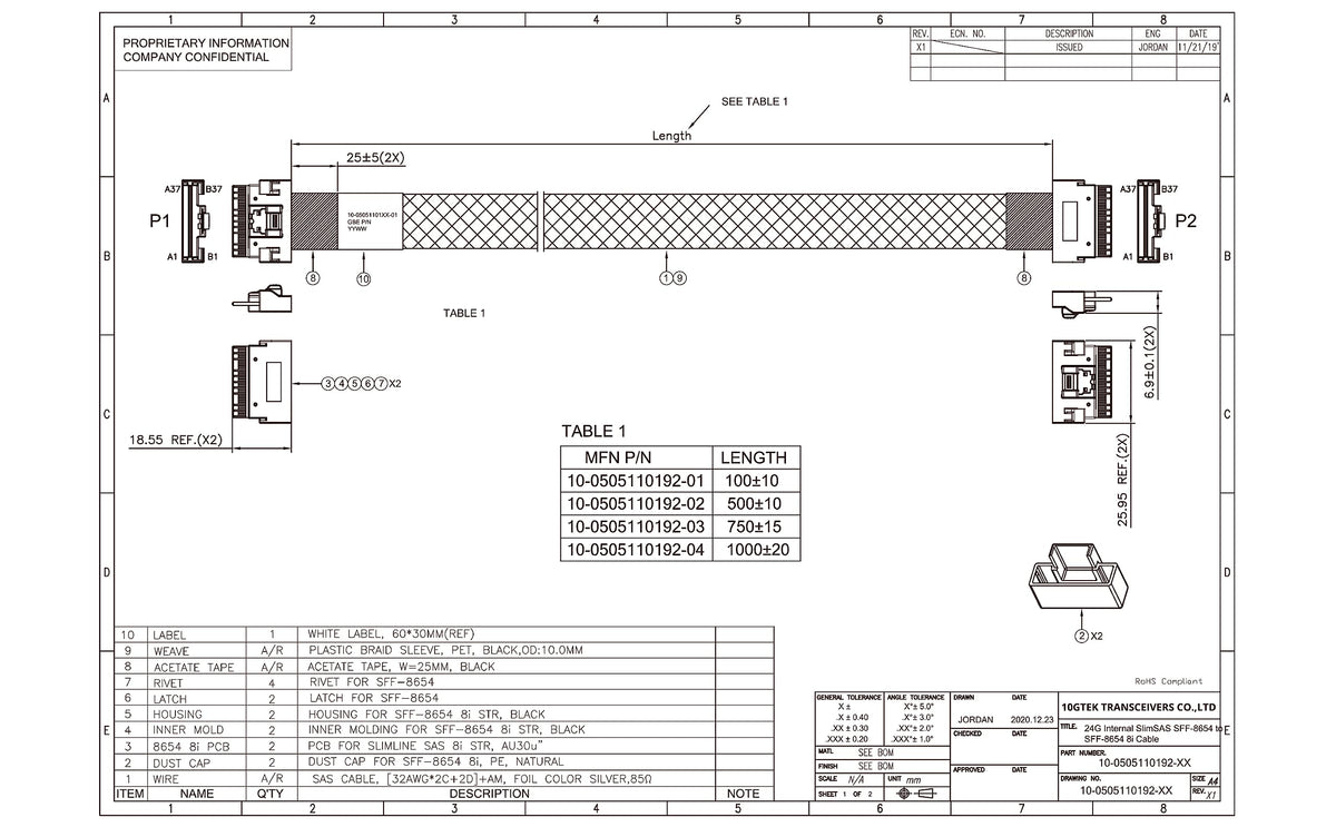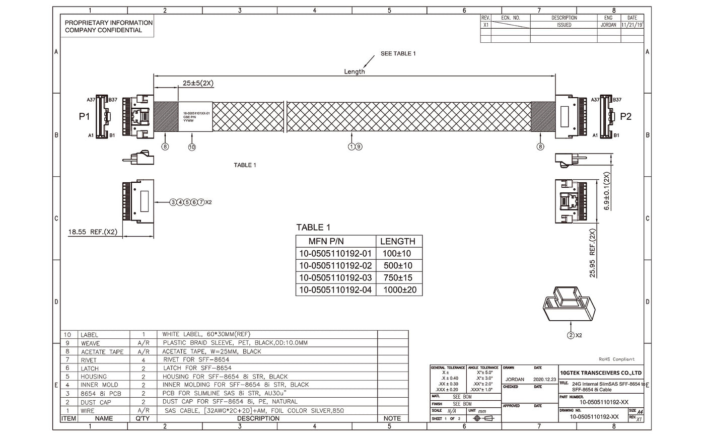 Slimsas Sff-8654 To Sff-8654 Cable, 8I Configurations, Supports Data Rates Up To 24Gbps, 85 Ohm Impedance, 32Awg, (11#) Straight Types Cable Plug. | Designed For Unshielded, Internal I/O Connectors. High Density 74Pin Offers Superior Signal Integrity Performance. | Compliant With T10/ Serial Attached Scsi Standard, Extended To Support Pcie 4.0. Applicable For Servers/ Pc, Data Storage, Workstation, Datacenter, Devices. | Ribbon Cable Interface And Assembly Options Provide Low Profiles And Design Flexibility. | This Cable Serves As A High-Speed Connectivity Solution For Sas-Based Storage Systems, Enabling Faster Data Transfer Rates With Low Signal Degradation Due To Its Design Specifications Tailored For Pcie 4.0 Technology.
