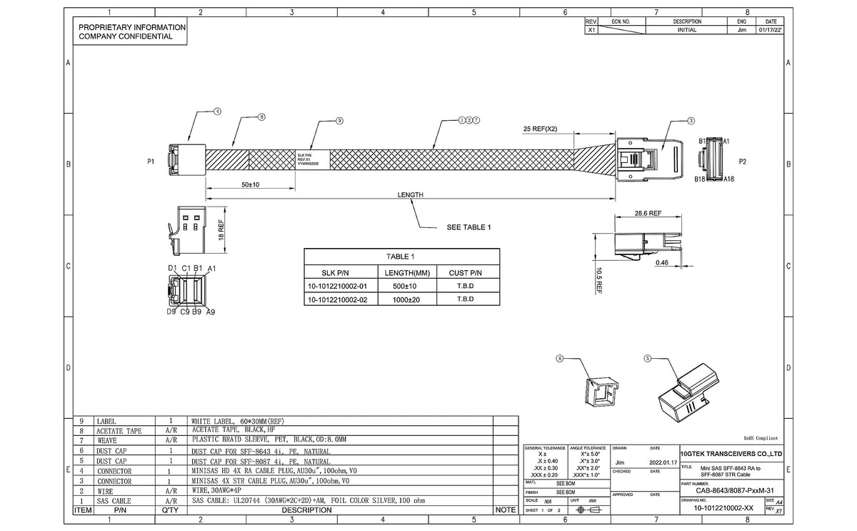 Internal Sas Sff-8643 To Sff-8087 Cable, Right Angle To Straight, 0.5-Meter(1.6Ft); | Impedance=100 Ohms; | Up To 6Gbps Data Rates; | Customized For Mix-Connector-Link; | If The Cable You Need Is Not Above, Please Contact Us For Your Design.