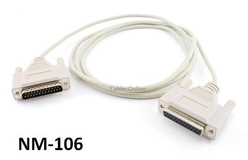 6Ft Null Modem Db25 Male To Female Data Transfer Cable This Cable Allows You To Connect One Pc To Another Nearby Pc Or Serial Device Using Its Modem Protocol. Specifications: * (1) Db25 Male Plug To (1) Db25 Female Jack * Allows Two Computers To Communicate With Each Other * Professional Quality And Construction * Durable Yet Flexible Pvc Jacket With Strain Relief * Gold-Plated Contacts Minimizes Data Loss * Color: Beige * Length: 6Ft Cablesonline Part Number: Nm-006