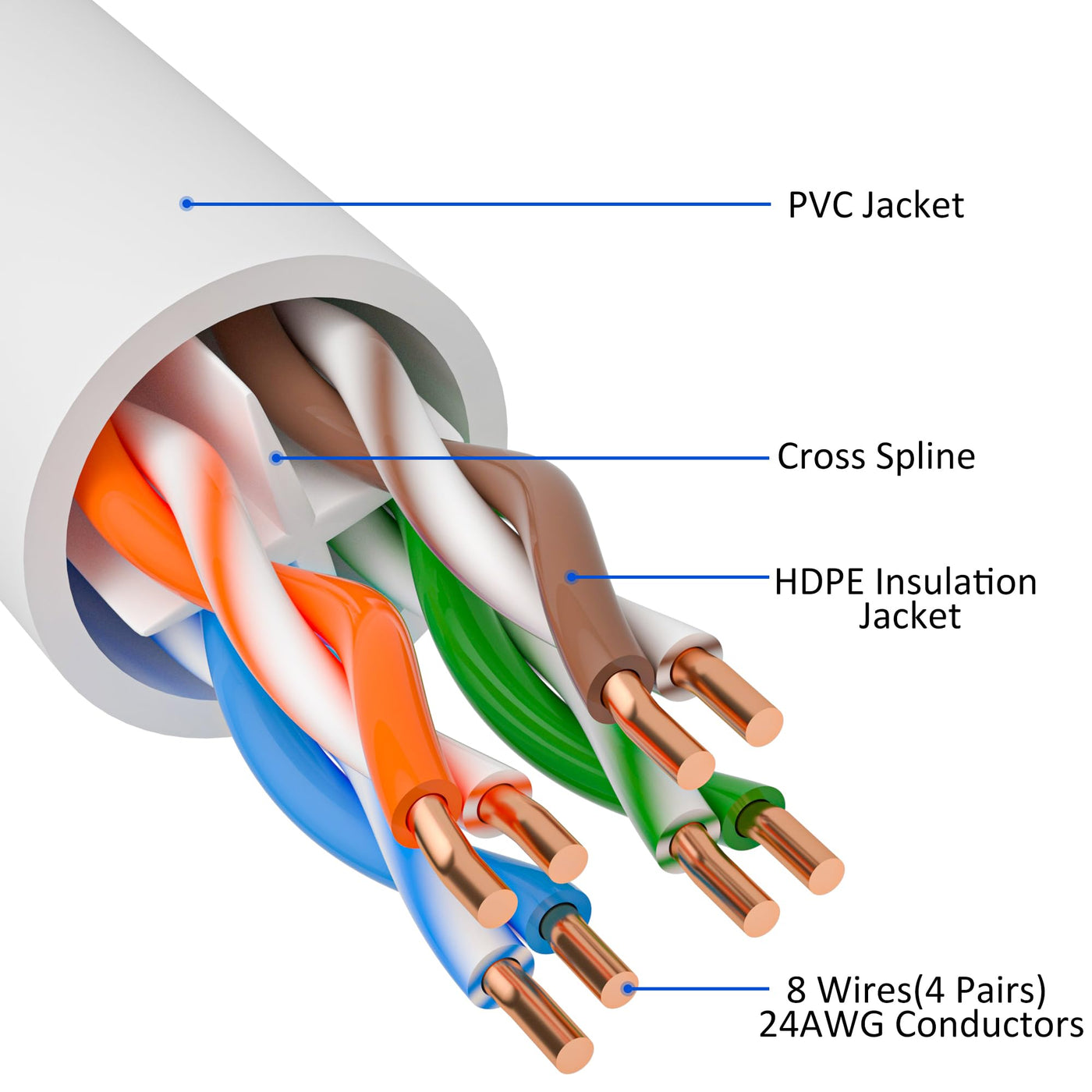 High Speed Cat 6 Ethernet Cablelag-Free Data Transfer Speeds Of Up To 1.0Gpbs. Bandwidth Of Up To 550Mhz. Premium Materials4 Twisted Pairs Of Solid Cca Copper Clad Conductors. Gold-Plated Rj45 Connectors. Cm Grade Pvc Jacket Complies With Tia/Eia 568-C.2.