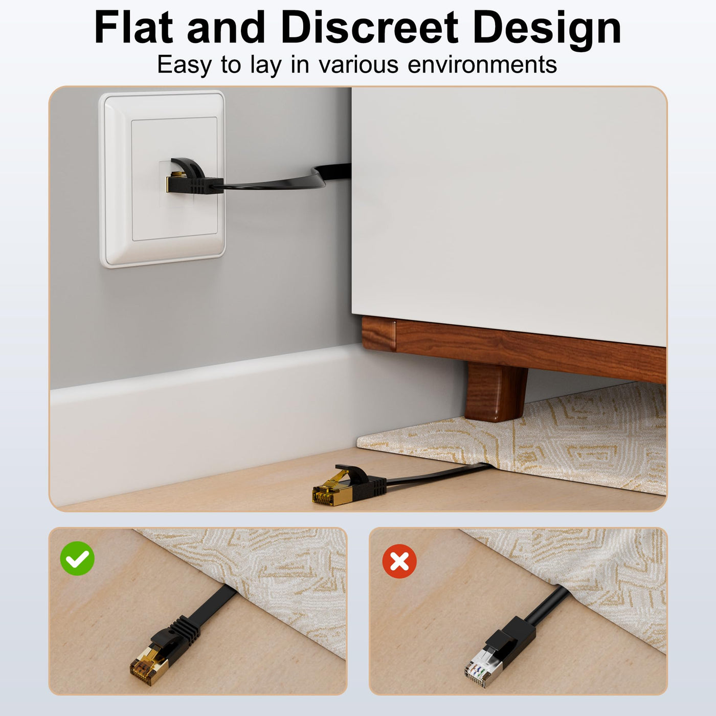 Mygatti Cat7 Flat Ethernet Cable 10Gbps & 600Mhz High Speed Backward Compatible With Cat6A / Cat6 / Cat5E / Cat5 Flat Design & Easy Installation Bundled With The 25 Cable Clips For Free Ofc Wire & Gold Plated Rj45 Connectors One Of The Most Powerful And Advanced Ethernet Cables