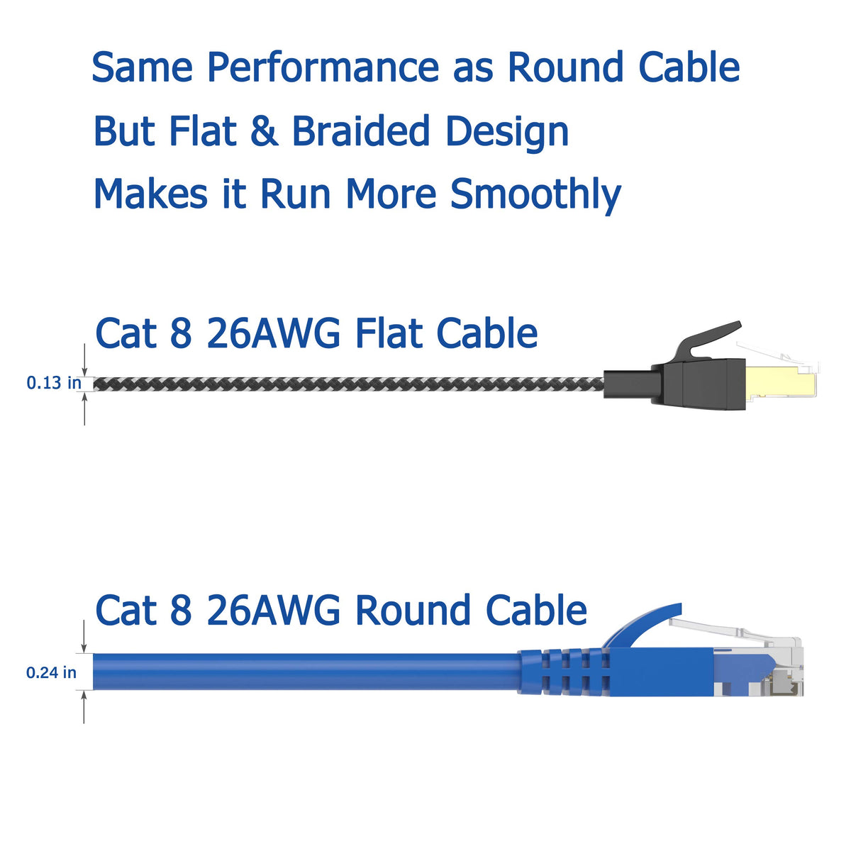 Some Advantages Of Orbram Cat 8 Ethernet Cable You Need To Know: Performance: 1--High Quality, More Stable 2--Flat Design, Space Saving 3--High Speed Point To Point Signal Transmission 4--Compatible But Faster Than Older Cat 5, Cat 6, Cat 6A And Cat 7 Structure: 1--Nylon Braided Material Cover To Ensure Orbram High Speed Patch Cord A Longer Life Span 2--Cat 8 Rj45 Lan Cable Is Consisted Of 4 Shielded Foiled Twisted Pair(S/Ftp) Oxygen-Free Copper Wires To Provide Faster Data Transfer. 3--Cat 8 Cable Shielded With High-Quality Jacket To Secure A More Stable Connection Without Any Interference 4--Universal Rj45 Connector Internet Cable For A Wide Application Compability And Application: Orbram Flat Cat 8 Internet Cable Is Designed To Be Used In Data Centers,Cloud Computing,Server Applications,And Other High Performance Computer Networking Application. And Flat Cable Perfects To Connect Playstations, Xbox, Network Adapters, Hubs, Switches, Routers, Dsl/Cable Modems And Patch Panels. It Is Your Best Choice For Smart Home &Amp; Smart Office And Entertainment. Our Customer Service: 1--All Customer Message Will Be Replied Within 24 Hours 2-- Professional Technical Support Team Are Always Standby To Provide Help