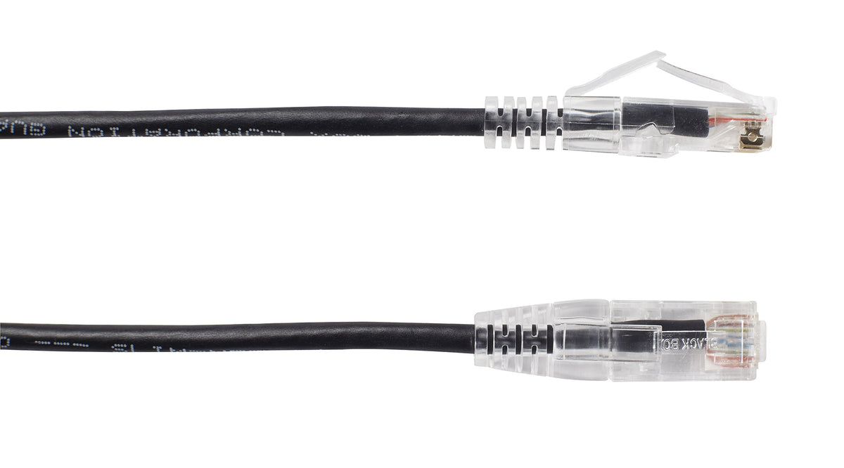 Q: What is the maximum length for effective data transmission?A: For optimal performance, it is recommended to keep the length of the Cat 6 cable under 100 meters (328 feet). The Black Box Slim-Net cable, at 10 feet, ensures reliable data transmission without signal degradation.