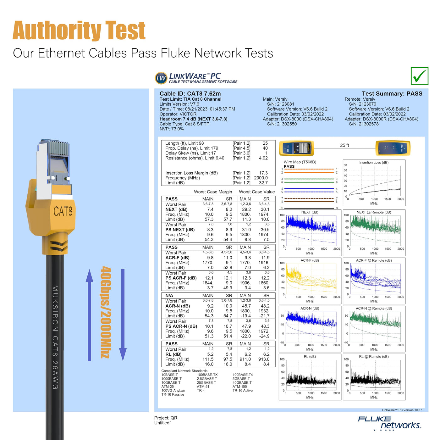 Q: How does the MUKSIRON Cat8 Ethernet Cable differ from lower category cables?A: Compared to lower category cables like Cat6 or Cat7, the MUKSIRON Cat8 Ethernet Cable offers higher bandwidth (up to 2000MHz) and faster data transfer rates, making it ideal for high-performance networking needs.