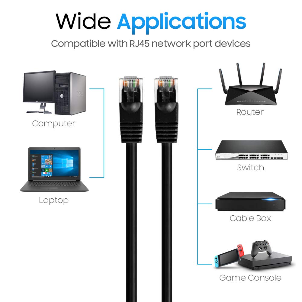 Cmple Cat5E Network Ethernet Cable Computer Lan Cable 1Gbps 350 Mhz, Gold Plated Rj45 Connectors 3 Feet Black