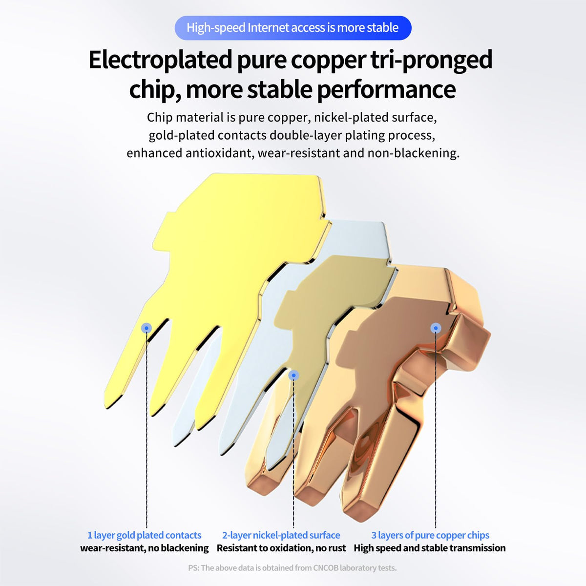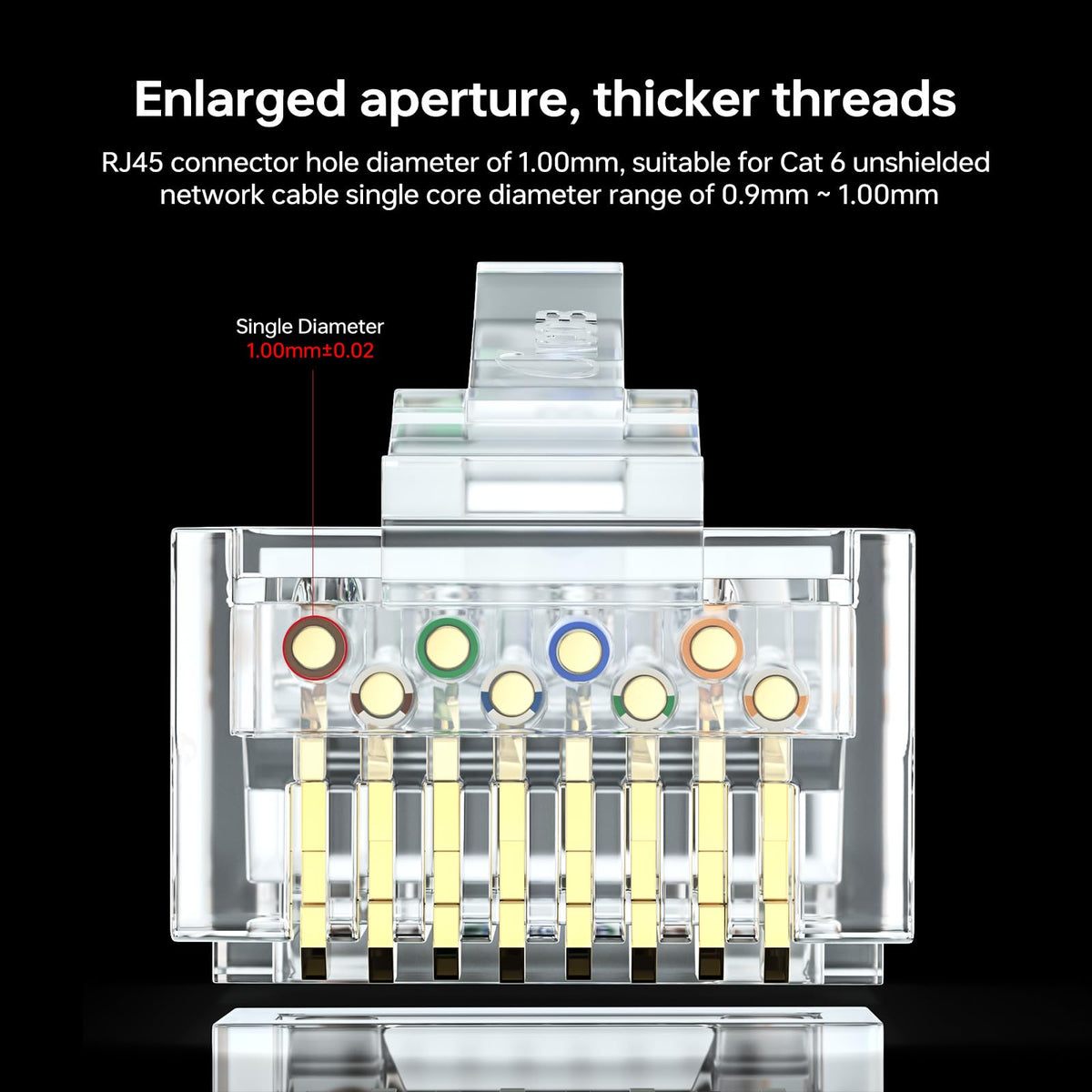 [ Stable Connection ] Three-Layer Metal, 24K Gold-Plated Contacts For Faster And More Stable Transmission, Nickel-Plated Bottom Copper For More Durability, Trident Chip Design For Large-Area Contact With Network Cable, Stable Transmission Rate At 1000Mbps [ Convenient Operation ] The 2 Piece Rj45 Connector Helps You To Find The Wire Holes Precisely And Correctly, Making The Link Smoother And The Operation Faster [ Flexible And Bending Resistant ] Tough And Bend-Resistant Shrapnel Material Makes It Be Snaps In And Out Of Ports 750 Times For Easy Movement And Frequent Use [ Wide Applicability ] Suitable For Cat6 Cat5E Unshielded Network Cable, Wire Hole Diameter 1.1Mm, Suitable For 23-26Awg 24 Round Cable. Provide More Stable And Fast Transmission For Your Home Decoration Wiring, Unobstructed Gaming And Engineering Work [ High Quality And High Guarantee ] Cncob Relies On The Factory Production Strength, Providing Products With International Qualification Certificates And Verified By A Series Of Quality Tests.