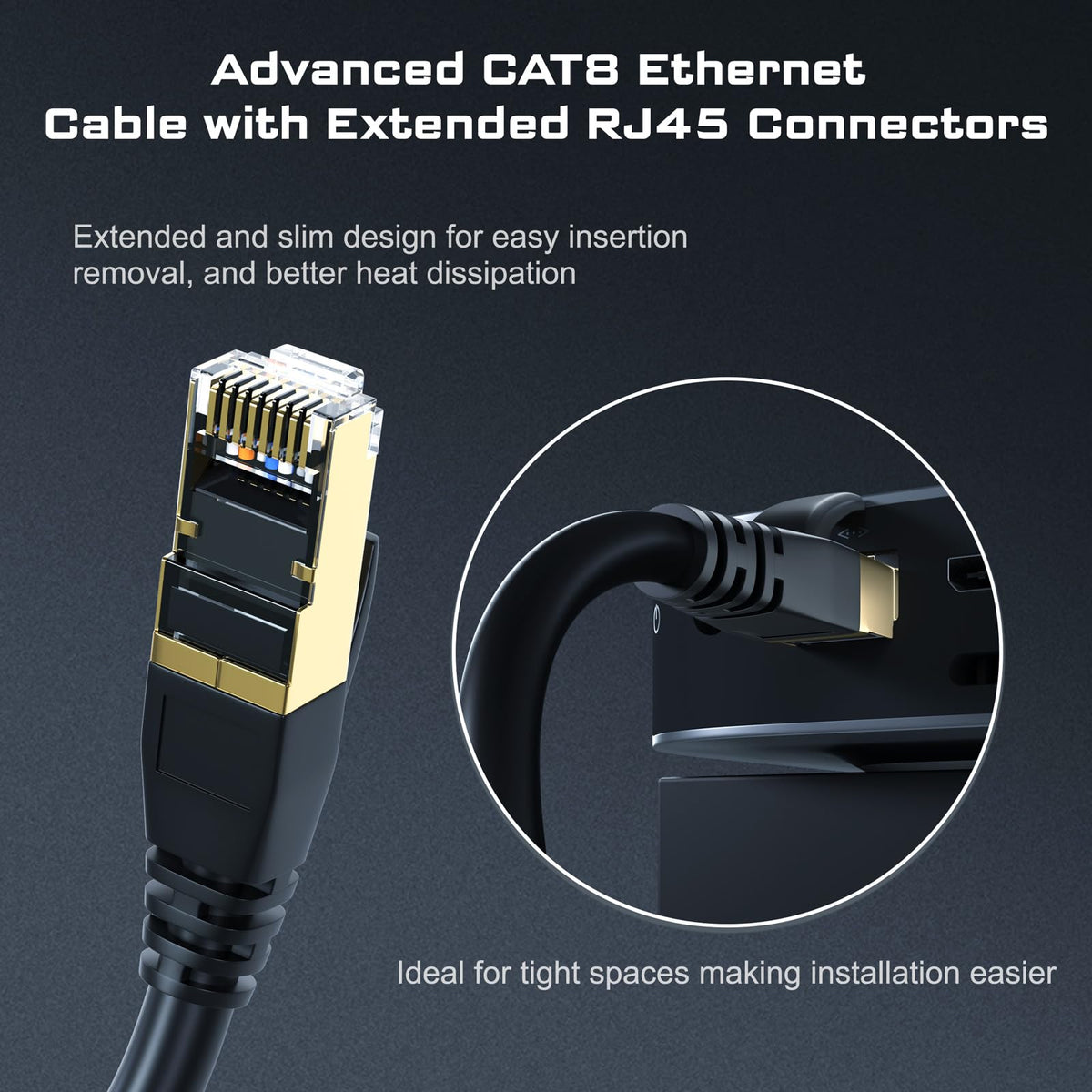 1. Maximum Speed Of Data Transmission: Each Shielding Of Cat8 Is Made Of Best Material. Compared With Other Ethernet Cable The Additional Shielding Of Cat8 Reduces The Signal Interference Of Crosstalk, Noise, And Other Interference That Degrades The Signal Quality. Give You The Best Network Connection And Rapid Data Transmission Ever. 2. Best Choice For High Performance Network: Cat8 Ethernet Cable Is Designed For High Performance Network, Such As, Server Applications, Cloud Computing, Data Centers, And Other High Performance Computer Networking Application. Perfect To Connect Your Gaming Devices, Xbox, Ps3, Ps4, Ps5, Network Adapters, Hubs, Switches, Routers, Dsl/Cable Modems And Patch Panels. Cat8 Is Your Best Choice For Smart Home & Office. 3. Outdoor Rated & Heavy Duty Cat8 Ethernet Cable: Quadruple Shielded Cat8 With Upgraded Uv-Resistant Pvc Can Withstand Extreme Weather Yet Working Efficiently. It Also Can Be Buried Directly Under The Ground. Its Perfect For Outdoor & Indoor Use