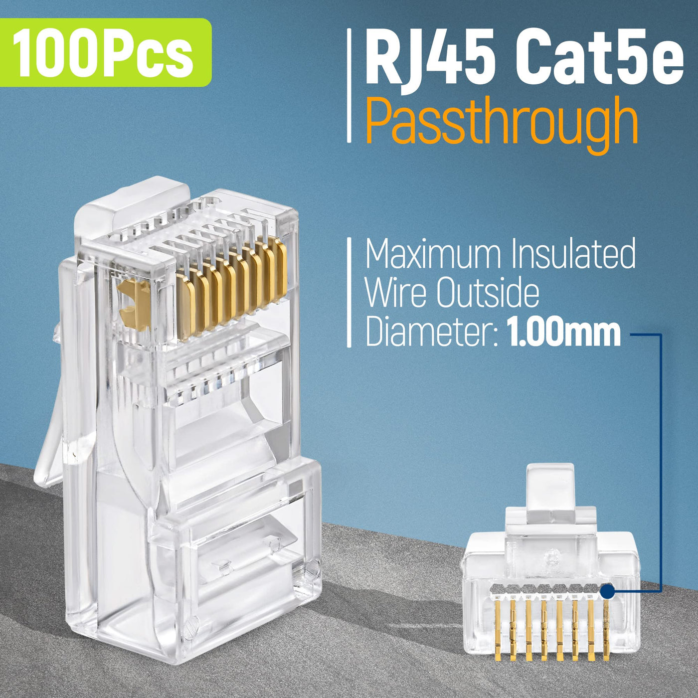 Gtz Rj45 Cat5E Pass Through Connectors Pack Of 100 Ez To Crimp Modular Plug For Solid Or Stranded Utp Network Cable Male E