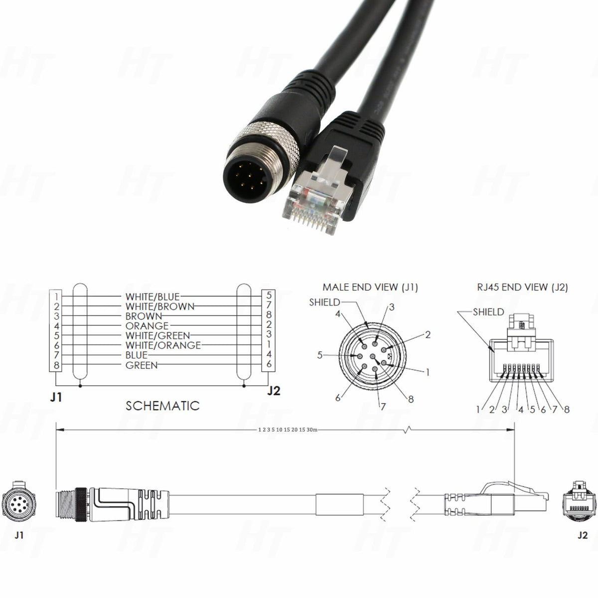 Hangton Cognex Gige Ethernet M12 8 Pin A Code Male To Rj45 Cat6 Cable, Shielded High Flex Network Cable (2 Meter)