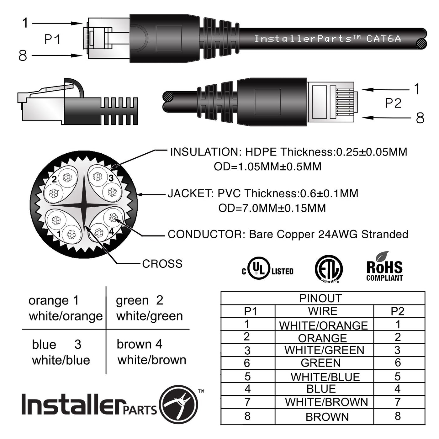 Installerparts Cat6A Network Patch Cables Offer Connectivity To Computers And Network Components Such As Routers, Switch Boxes, Network Printers, Network Attached Storage (Nas) Devices, Voip Phones And More. Installerparts Booted Cat6A Patch Cables Are Available In 15 Different Lengths Ranging From 0.5 Foot To 200 Feet And In A Variety Of Colors (Black, Blue, Gray, Green, Orange, Purple, Red, White And Yellow). This Cable Provides Exceptional Transmission Performance And Low Signal Losses. It Supports Up To 550 Mhz And Is Suitable For Fast Ethernet, Gigabit Ethernet, And 10-Gigabit Ethernet. All Installerparts Cat6A Cables Are Made Of 100% Bare Copper Wire As Opposed To Copper Clad Aluminum (Cca) Wire, Therefore Fully Compliant With Ul Code 444, Which Requires Pure Bare Copper Wire In Communications Cables. Our Cat6A Patch And Bulk Cables Are Used By Data Centers Around The World. Product Specs: Category 6A Cable Cable Type: Cat6A 4-Pair Utp Pvc (With Cross) Outside Diameter: 7.0 0.15 Mm (0.25 0.05 Inch) Connector Type: Rj45 Conductor Material: 100% Bare Copper Contact Plating: 50 Micron Gold Plated Conductor Gauge: 24 Awg Cable Performance: Up To 550 Mhz Cable Structure: Stranded T56A8B (At&T 258A) Wired Tia/Eia* T-568B Standard Wiring Verified, Rohs Compliant Ul/Cul Listed High Quality 100% Copper: Installerparts Patch Cables Are Made Of 100% Bare Copper Wire And 50 Micron Gold Plated Rj45 Plugs. We Do Not Use Cca (Copper Clad Aluminum Wire). Each Item That We Offer Has Been Hand Selected By Our Team And Achieves Our Standards For Premium Quality. Our Factory-Partners Employ Industry Environmental Standards Such As Iso9001, Iso14001 Or Rohs.