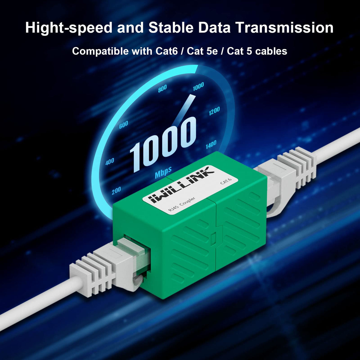 Iwillink 5-Pack Cat6 Rj45 Ethernet Coupler The Iwillink Cat6 Rj45 In-Line Coupler Requires No Tools To Connect Rj45 Ethernet Patch Cables. This Coupler Is An Ideal Solution For Extending Existing Cat5, Cat5E, Or Cat6 Cables. Superior Construction Combines A High-Impact, Fire-Retardant Plastic Housing With Gold-Plated Rj45 Contacts That Meet Or Exceed Category 6 Performance In Compliance With The Tia/Eia 568-C. 2 Standard. Home Or Office Application Widely Used In Home, Company, Surveillance, Engineering And Other Network Cabling. Transmission Speed Of Cat6 Coupler Up To 1000 Mbps With No Loss Of Data Speed Or Quality. Feature [Compact Design] Size: 1.19In L X 0.6 In W X 0.67 In H. [Safe Design] Made Of Premium Abs Material For Enhanced Safety And Durability, Is Resistant To High Or Low Temperature. [Gold-Plated Design] Rj45 Gold-Plated Contacts Effectively Reduce The Proximal Crosstalk And Resist Corrosion. [Easy To Use]No Drivers Are Required, Just Insert Two Ethernet Cables Into The Rj45 Jack To Get A Longer Cable. [Plug And Play Design]The Plug And Play Design Is Flexible For Use In A Variety Of Scenarios.