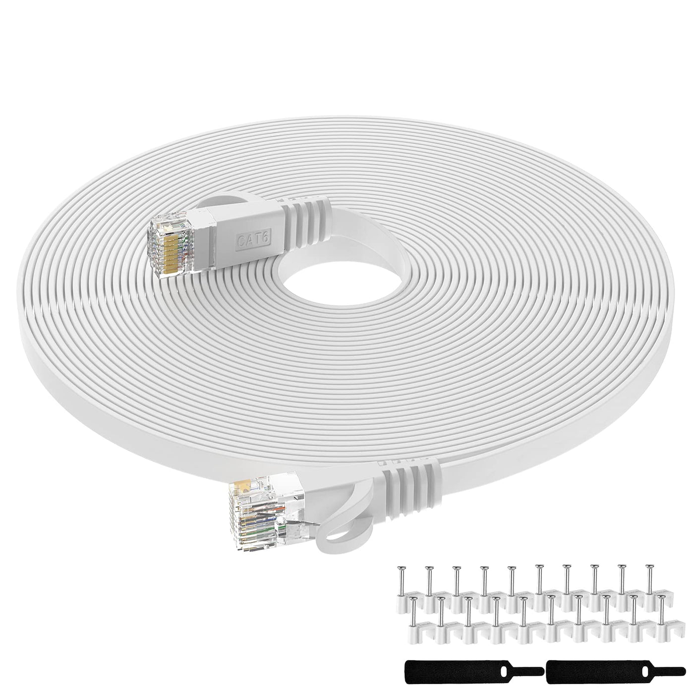 Lovicool Flat Cat6 Ethernet Cable 75Ft White High Speed Internet Patch Cable, Computer Lan Cable Rj45 Ethernet Cord With Cable Clips For Router/Modem/Ps4/Switch/Xbox/Gaming 75 Feet