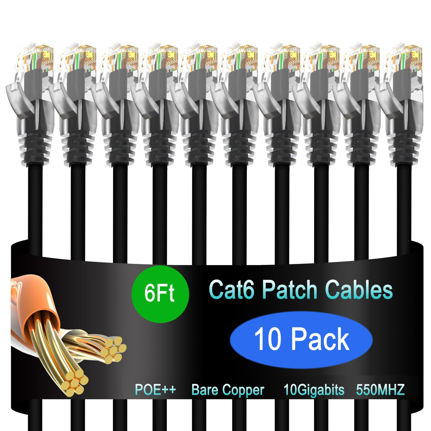 Lysymixs Cat6 Ethernet Patch Cable 6 Ft (10 Pack), Cat6 Patch Cable For Data Centers, Cat 6 Patch Cable 10G, Network Patch Cable