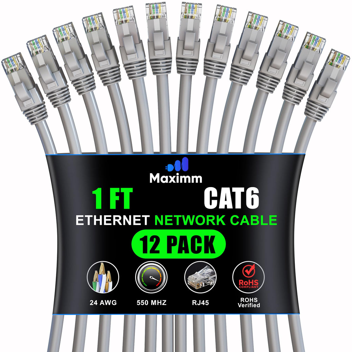 Maximm Cat 6 Ethernet Cable 1 Ft (12 Pack) High Speed Lan Cable, Internet Cable, Patch Cable, And Network Cable Utp, 10Gbps, 550Mhz Ethernet Cord Gray