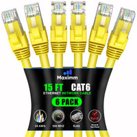Maximm Cat 6 Ethernet Cable 15 Ft (6 Pack) High Speed Lan Cable, Internet Cable, Patch Cable, And Network Cable Utp, 10Gbps, 550Mhz Ethernet Cord Yellow