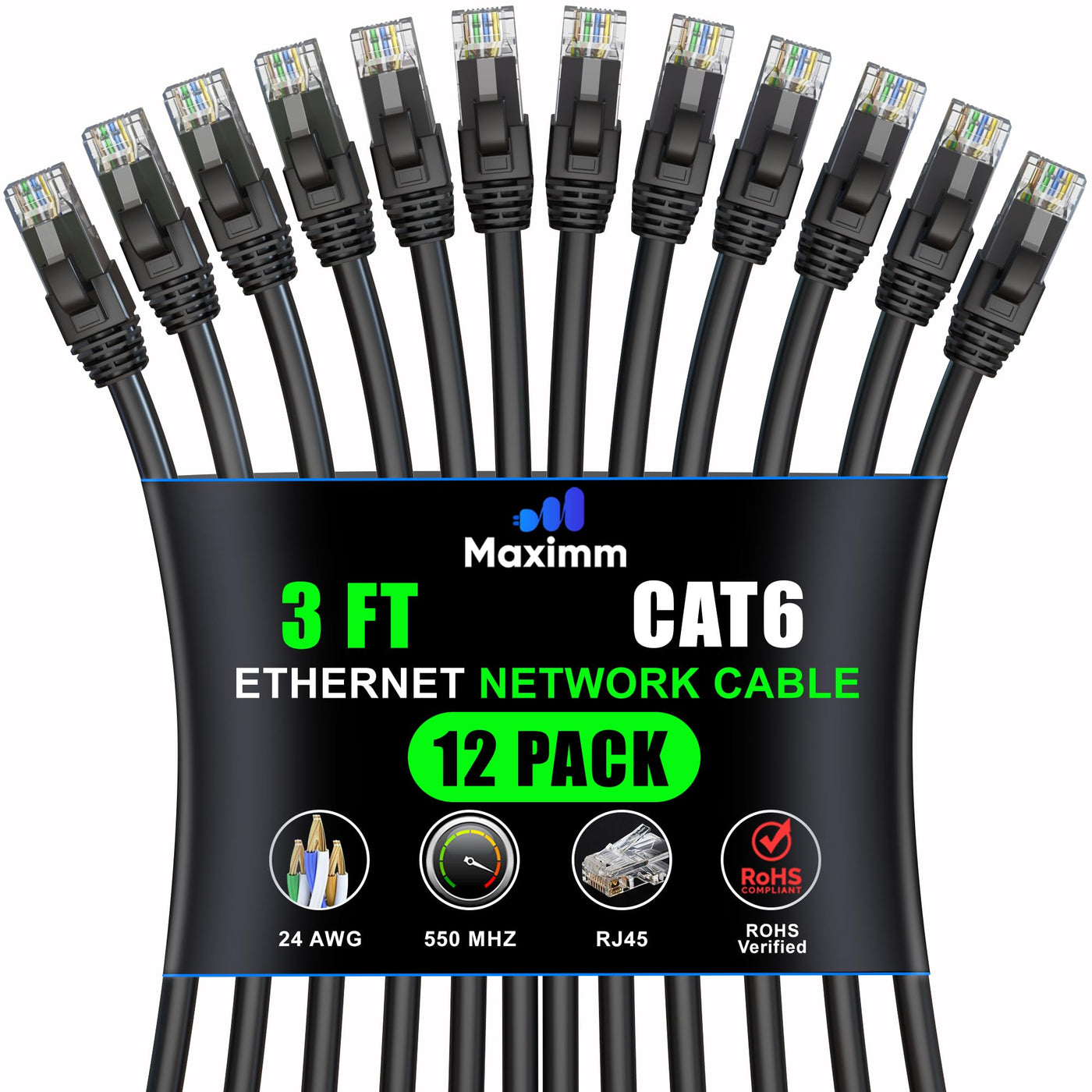 Maximm Cat 6 Ethernet Cable 3 Ft (12 Pack) High Speed Lan Cable, Internet Cable, Patch Cable, And Network Cable Utp, 10Gbps, 550Mhz Ethernet Cord Black
