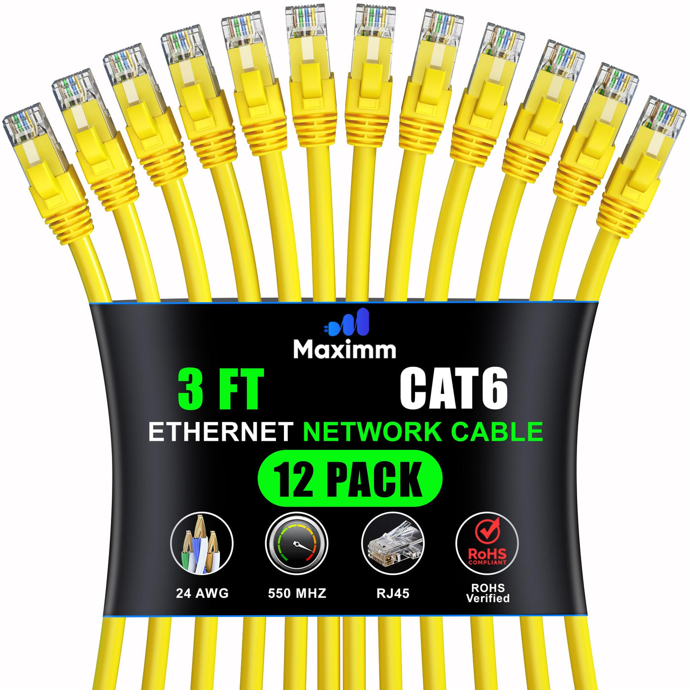 Maximm Cat 6 Ethernet Cable 3 Ft (12 Pack) High Speed Lan Cable, Internet Cable, Patch Cable, And Network Cable Utp, 10Gbps, 550Mhz Ethernet Cord Yellow