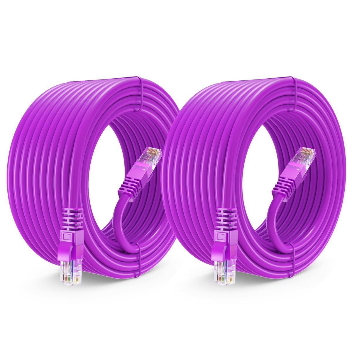 Maximm Cat 6 Ethernet Cable 40 Ft (2 Pack) High Speed Lan Cable, Internet Cable, Patch Cable, And Network Cable Utp, 10Gbps, 550Mhz Cat6 Cable Purple