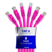 Maximm Cat 6 Ethernet Cable 5 Ft (6 Pack) High Speed Lan Cable, Internet Cable, Patch Cable, And Network Cable Utp, 10Gbps, 550Mhz Ethernet Cord Pink