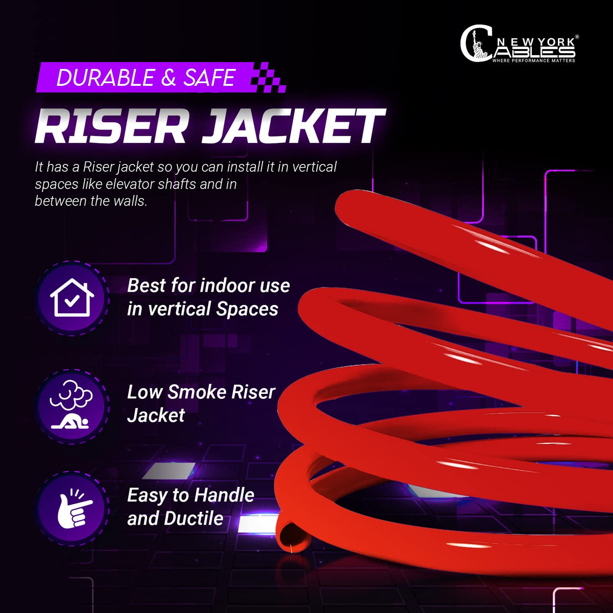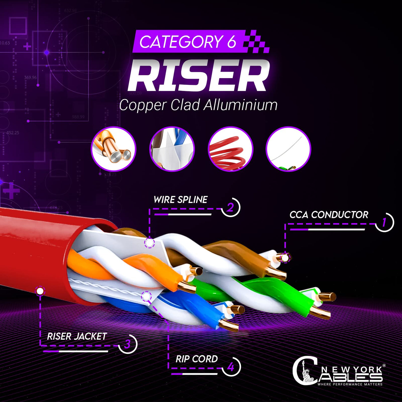 ? Best Features: Our Cat6 Riser (Cmr) Utp (Unshielded Twisted Pair) Networking Cable Is Tested To Upwards Of 550Mhz Bandwidth Capacity, Is Fire Retardant And Lightproof, Meets Or Exceeds Ansi Tia/Eia 568-C.2 Standards And Is Rohs Compliant. ? Description: Our Cat6 Riser Cable Has Enhanced Performance And High Bandwidth Capacity And Comes In Easy Pull Box Packaging For Smooth And Easy Security-Compatible Installation And Is Ideal For Commercial (Business) And Residential (Home) Networking. So, Our Cables Are Safe To Use In Outdoors And/Or Indoors. Our Cat6 Riser (Cmr) Rated Jacket Ethernet Cable Comes In Multiple Colours And Is Best For Network Adapters, Routers, Switches, Dsl/Modems And Hubs And Also Where You Want To Establish High-Bandwidth And Extreme And Stable Performance Networking Applications.