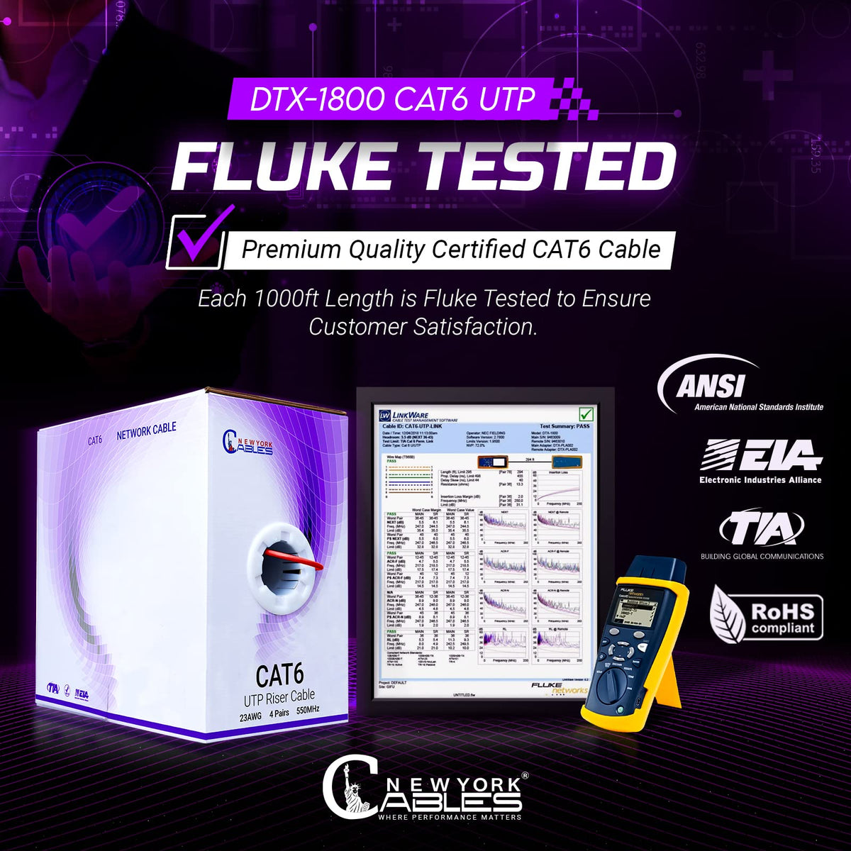 Q: What is the length of the NewYork Cables Cat 6 Cable and how is it packaged?A: The cable is 1000 feet long and comes in a hassle-free easy pull box packaging for smooth installation.