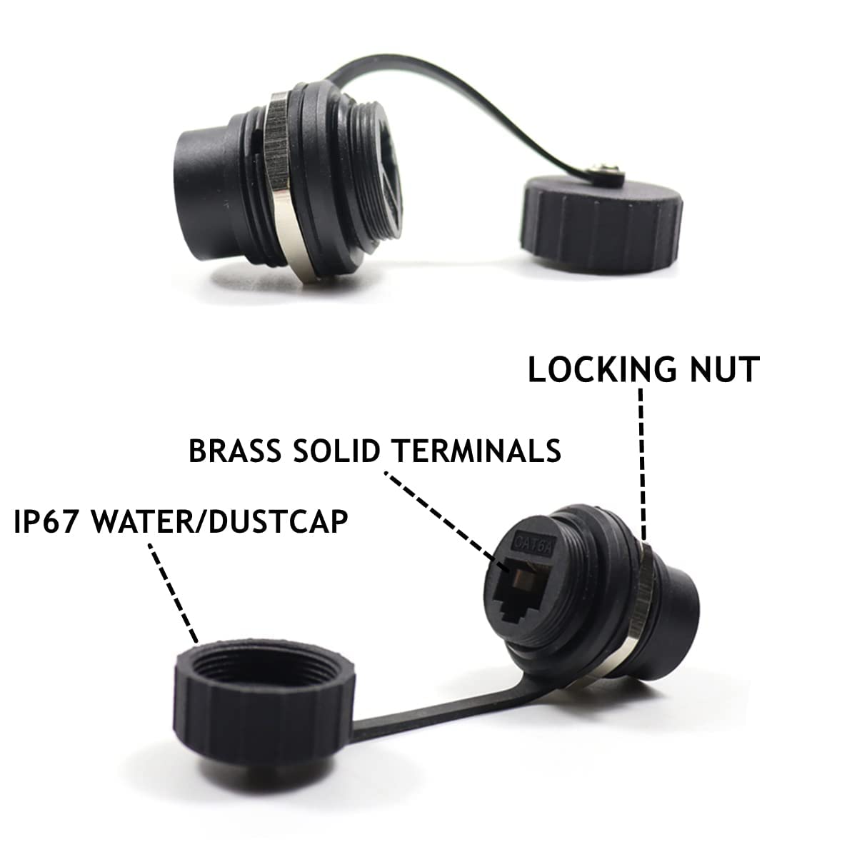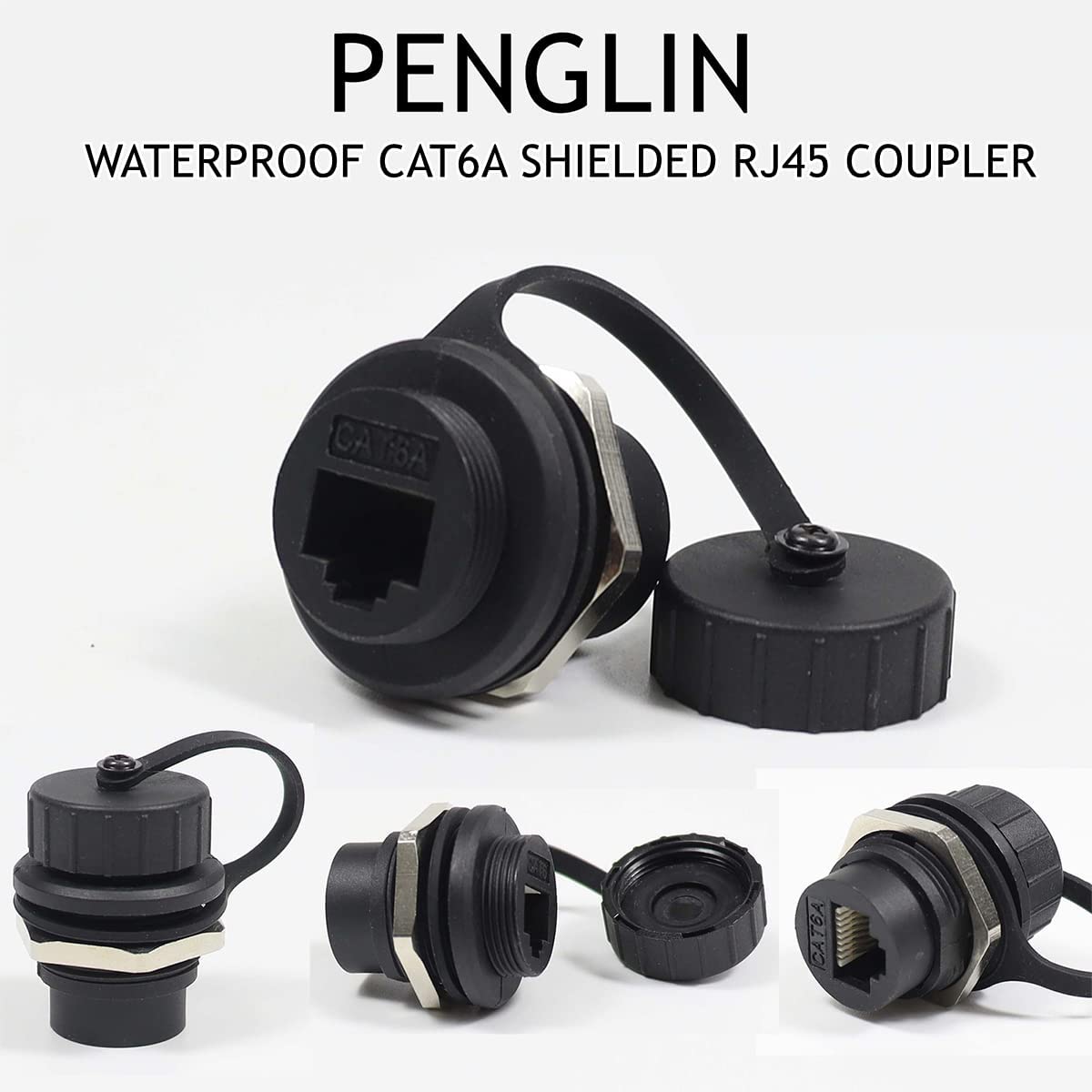 Penglin 2Pack Waterproof Rj45 Shielded Panel Mount Coupler, Cat6A Ethernet Lan Pass Through Connector, Ip67 Female To Female Bul