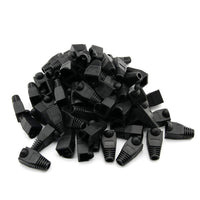 Rilexawhile 100 Pcs Black Soft Plastic Cat5E Cat6 Ethernet Rj45 Cable Cap Connector Boots Plug Cover Strain Relief Boots (Black)
