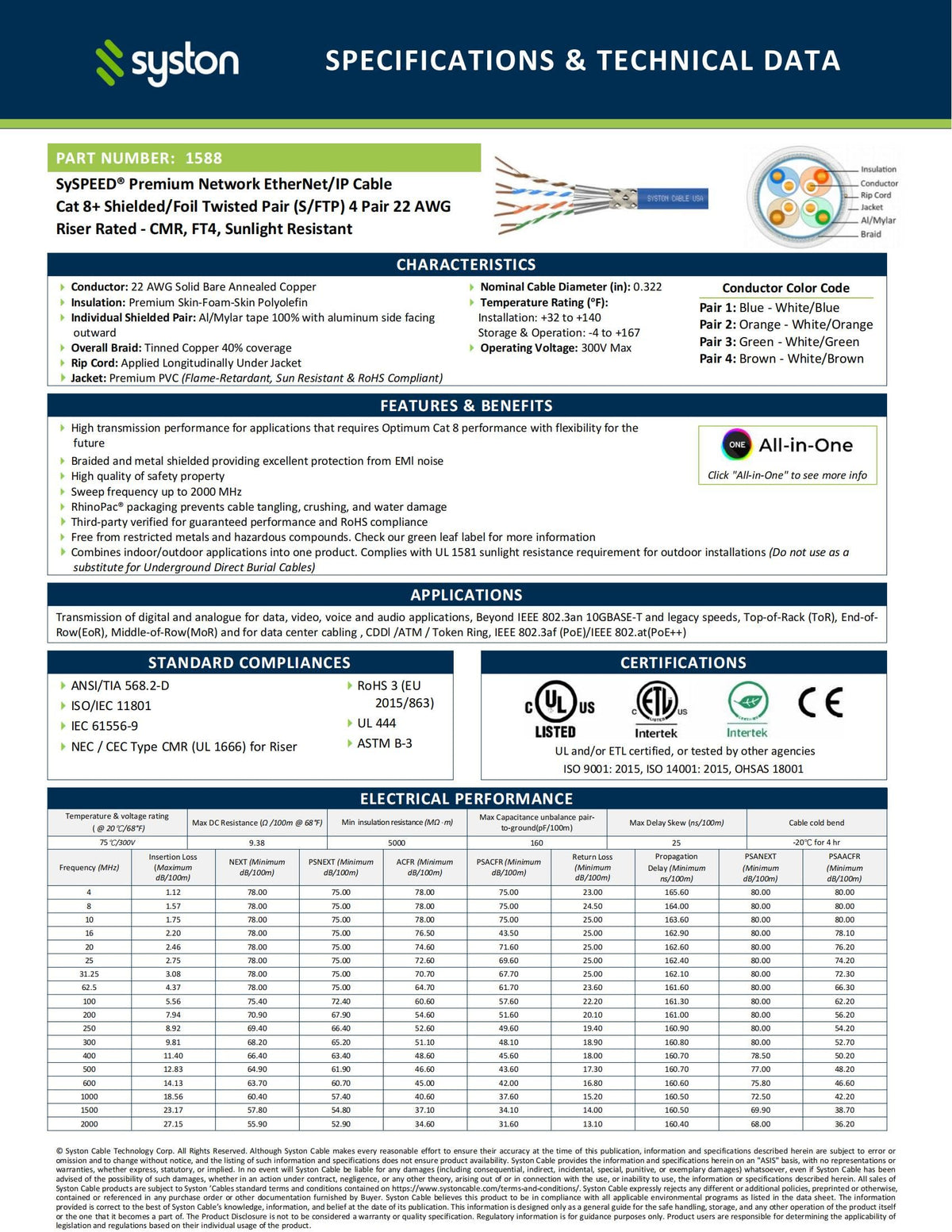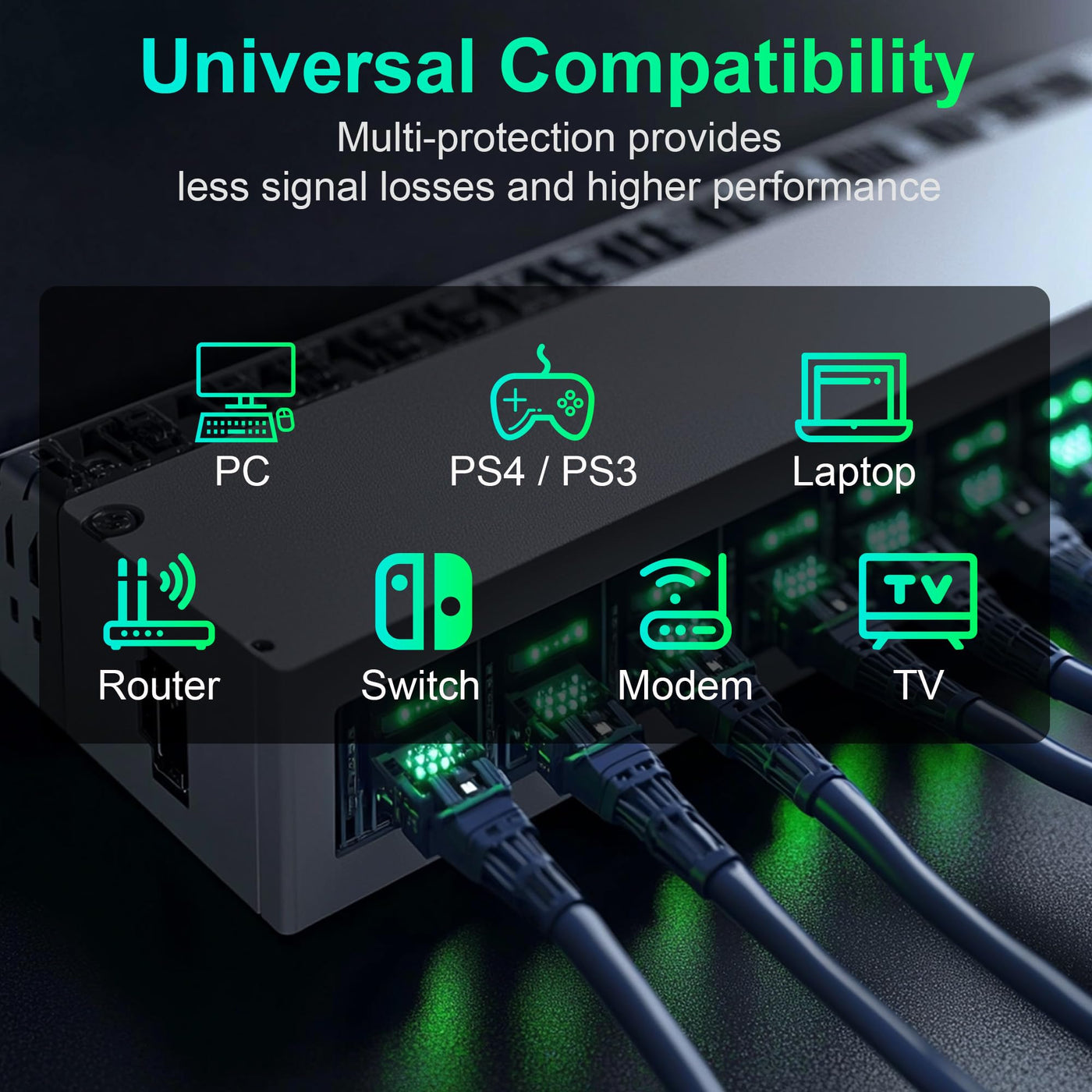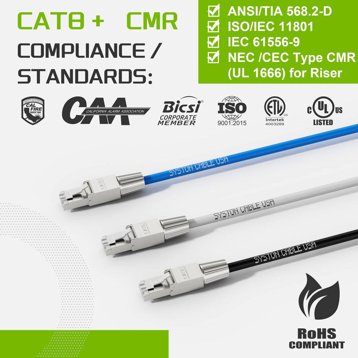 Ultra-High Speed 2000Mhz Performance - Experience Lightning-Fast Data Transmission With Our Ethernet Cable'S Impressive 2000Mhz Bandwidth And 40Gbps Speed. Perfect For Demanding Applications Like 4K Streaming, Online Gaming, And High-Speed Internet Browsing, Ensuring A Stable And Seamless Connection. | 22 Awg Pure Copper Conductors - Crafted With High-Quality 22 Awg Solid Bare Annealed Copper, This Cat 8+ Ethernet Cable Guarantees Excellent Conductivity And Minimal Signal Loss. Enjoy Superior Performance And Reliability, Even In Long-Distance Connections, For Uninterrupted Data Transfer. | Advanced S/Ftp Shielding For Maximum Signal Protection - Braided And Metal Shielded Providing Excellent Protection From Electromagnetic And Radio Frequency Interference (Emi/Rfi). Stay Free From Signal Degradation And Disruptions, Even In Environments With Heavy Electronic Noise. | Cmr (Riser-Rated) Flame-Retardant Grade - Our Cat 8+ Cable Is Designed With Your Safety In Mind. It Features A Cmr/Cl3R/Fplr (Riser-Rated) Flame-Retardant Rating That Provides Peace Of Mind In Case Of Fire. This Type Of Cable Is Commonly Used In Commercial Projects Where Enhanced Fire Safety Requirements Are Needed, Exceeding The Basic Fire Safety Rating Of Cm Cables. | Wide Compatibility - With The Rj45 Connector, This Premium Cat 8 Network Cable Can Be Perfectly Compatible With Computers, Laptops, Modems, Routers And Other Networking Devices. It Can Also Be Fully Backward Compatible With Cat6A, Cat6E, Cat5E.