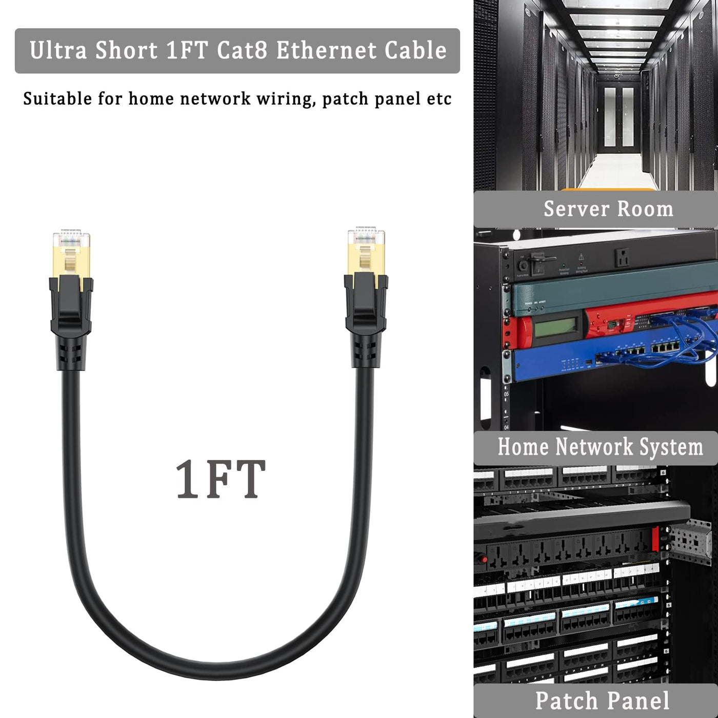 Uvooi Cat8 Ethernet Cable 1Ft 2 Pack, High Speed Ethernet Cable Cat 8 Sftp Internet Network Patch Cord Short Cable 40Gbps 2000Mh