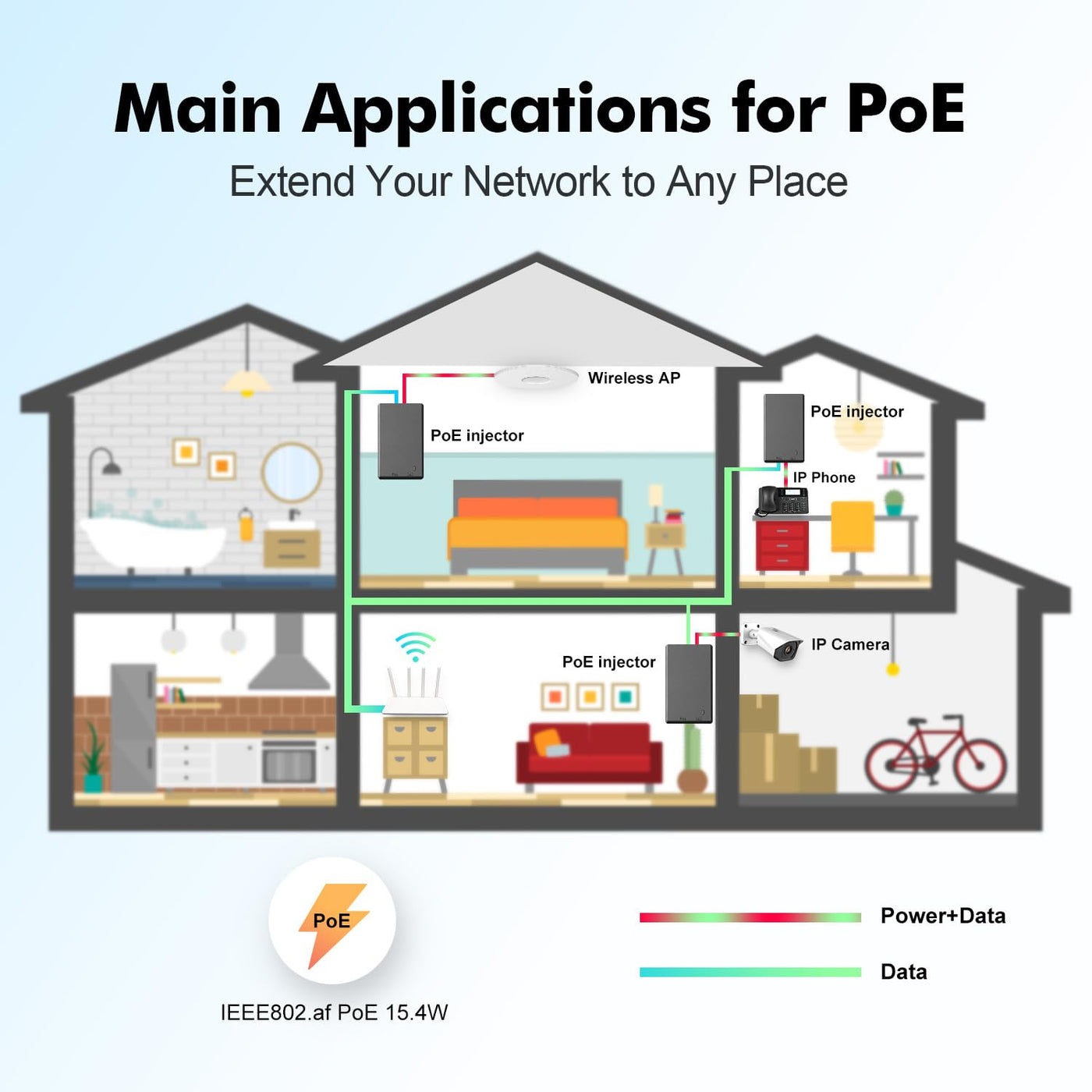 Q: Can I use the YuLinca Gigabit PoE Injector in my home network?A: Yes, the YuLinca Gigabit PoE Injector is suitable for home networks and can be used to power various PoE devices such as wireless access points, network cameras, and more. Its compact design and ease of installation make it a great addition to any home or small business network.