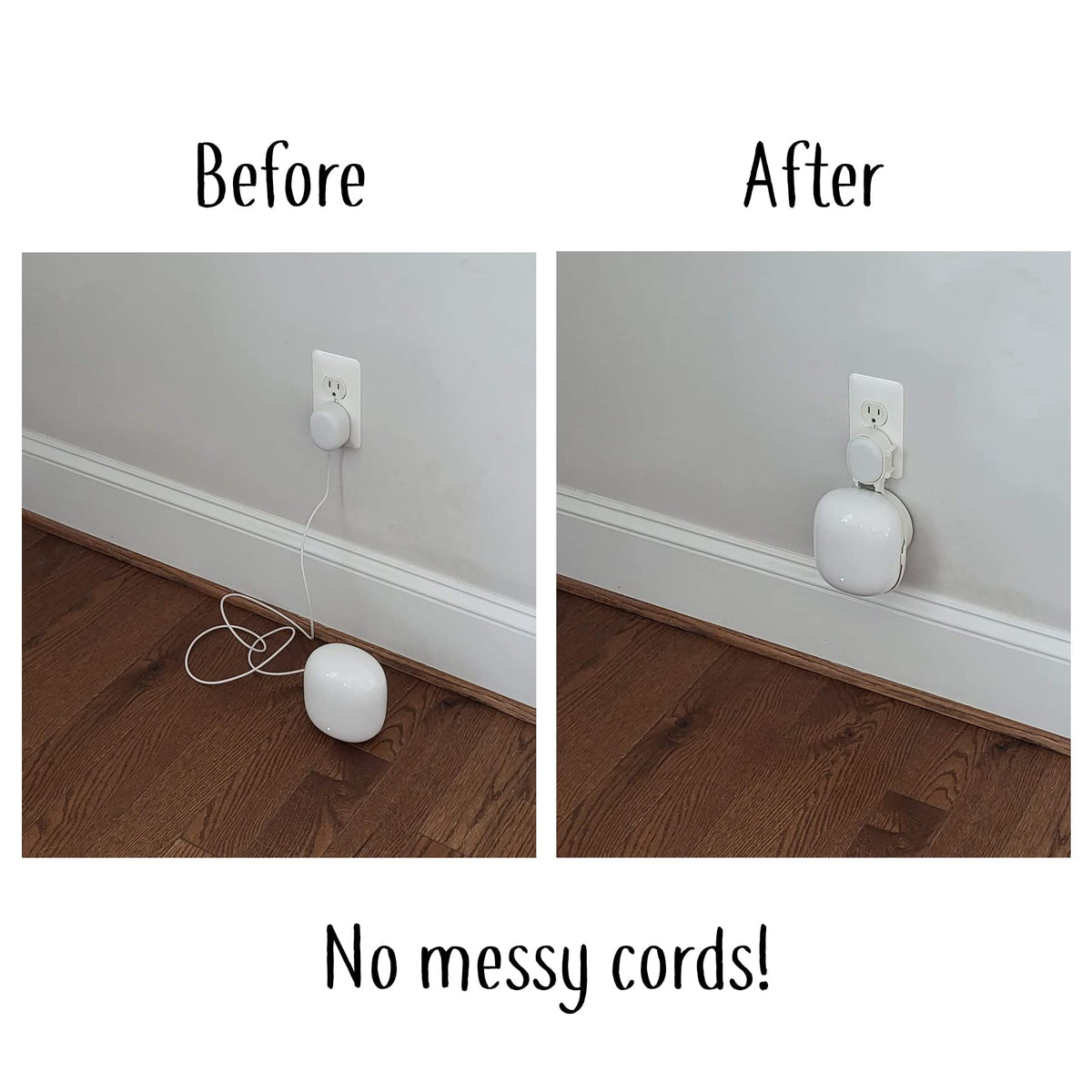 The Nest Wifi Pro Genie Is The Only Mount That Includes Our Patented Plug Adapter Which Adds A ''Dummy'' Ground Prong To Help Support Your Nest Wifi Pro. This Is A ''Must Have'' For The Heavier Pro Model! | The Nest Wifi Pro Genie Is Designed To Work With Both Vertical And Horizonal Outlet For Maximum Utilization. | The Nest Wifi Pro Genie Mount Uses The Cord That Comes With Your Nest Wifi Pro And Wraps It Neatly Around Our Patented ''Cord Groove Organizer'' | Can Easily Be Moved From Room To Room, Unlike All The Other Mounts On The Market Which Require Permanent Placement. | Please See Below For The Nest Wifi Point Genie - Designed For The ''Non-Pro'' Model!