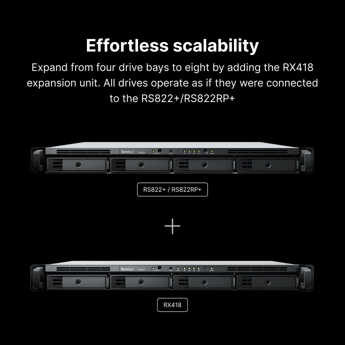Synology Rackstation Rs822+ Is A 4-Bay Rackmount Nas Enclosed In A Compact 1U Chassis. Running The Powerful Synology Diskstation Manager (Dsm) Operating System, It Is Ideal For Data Backup, Sharing, And Synchronization. Its Small Size, Stable Performance, And Storage Scalability Makes It Suitable For Branch Offices And Small And Medium-Sized Businesses With Everincreasing Data Management Needs.