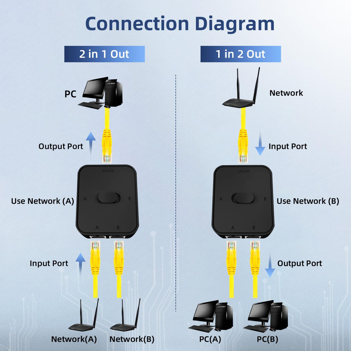 Binardat Gigabit Network Switcher, Passive Ethernet Selector, In/Out To A Or B Network, Bidirectional Manual Switcher, No Power Required