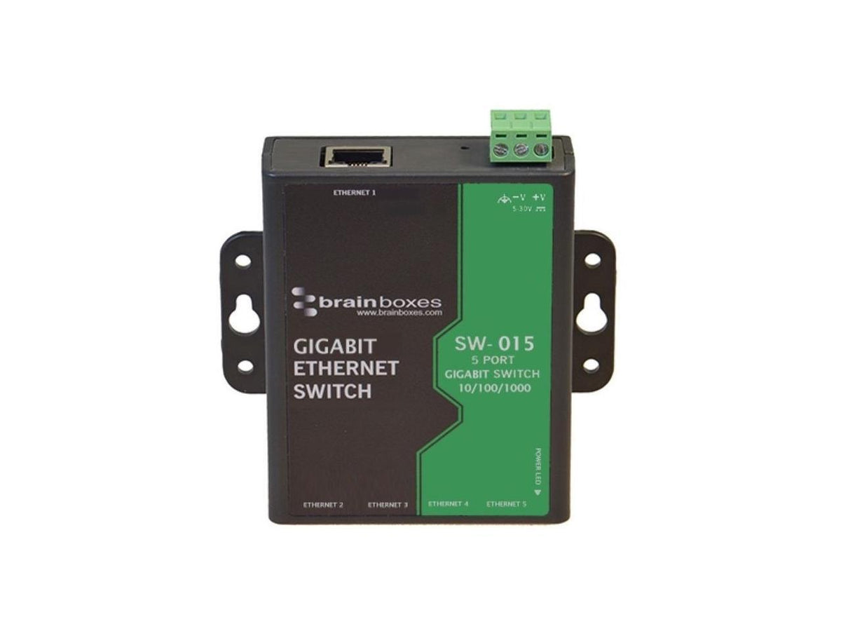Q: Is the Brainboxes 5 Port Gigabit Ethernet switch easy to set up?A: Yes, the Brainboxes SW-015 is designed for easy plug-and-play installation, requiring no additional configuration, making it user-friendly.