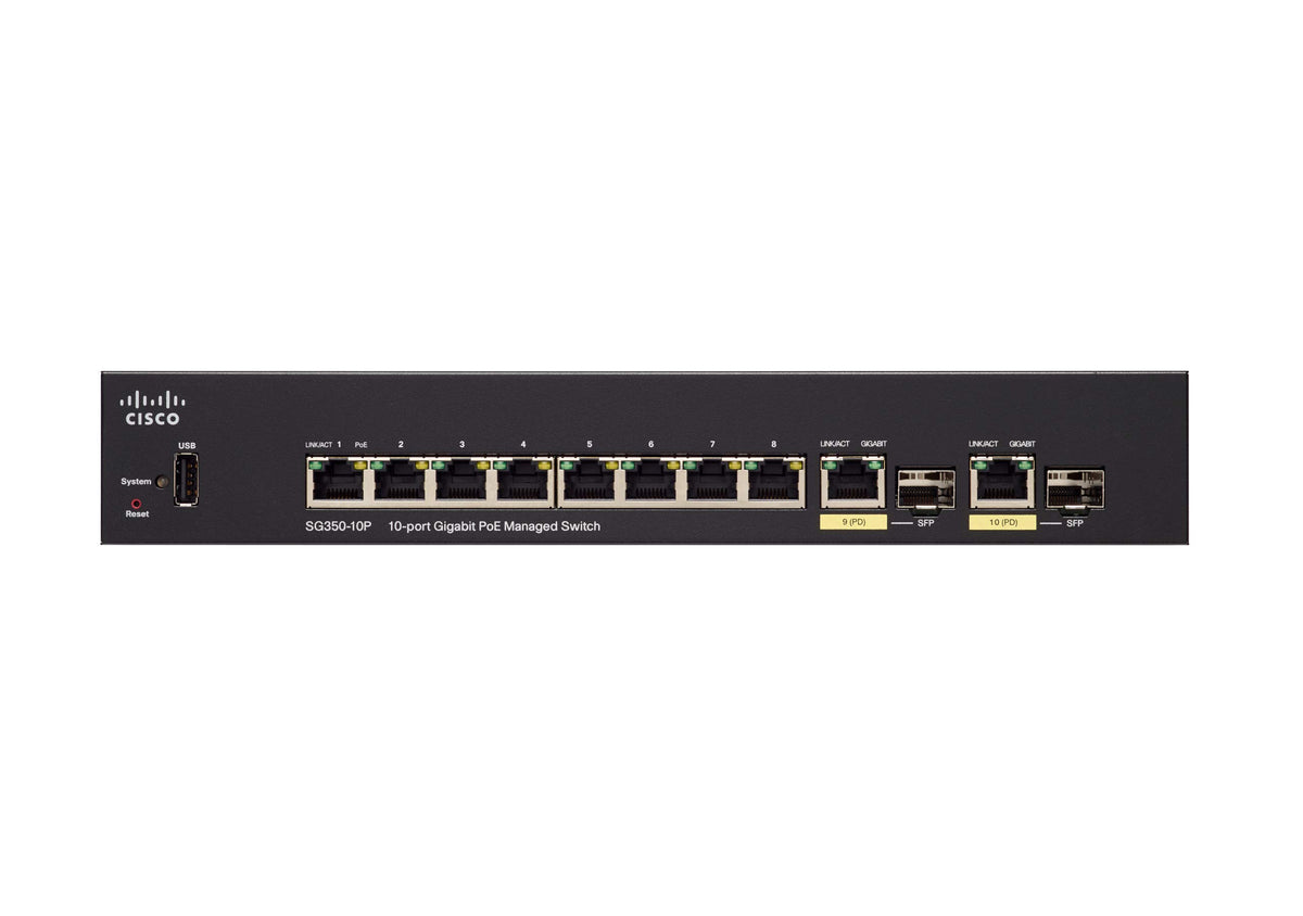 Cisco Sg350 10P Managed Switch With 10 Gigabit Ethernet (Gbe) Ports With 8 Gigabit Ethernet Rj45 Ports And 2 Gigabit Ethernet Co