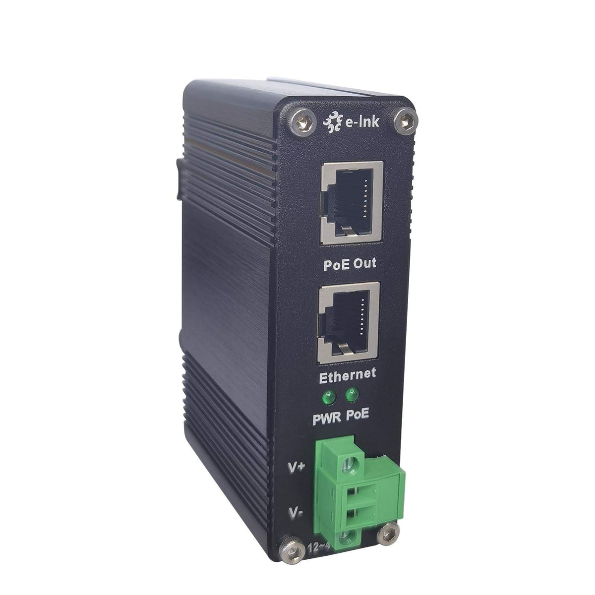 E Link Hardened Industrial Gigabit Poe+ Injector, 12~48V Input Poe+ Adapter, Ieee802.3Af/At 30W Output Up To 328Ft, Din Rail And