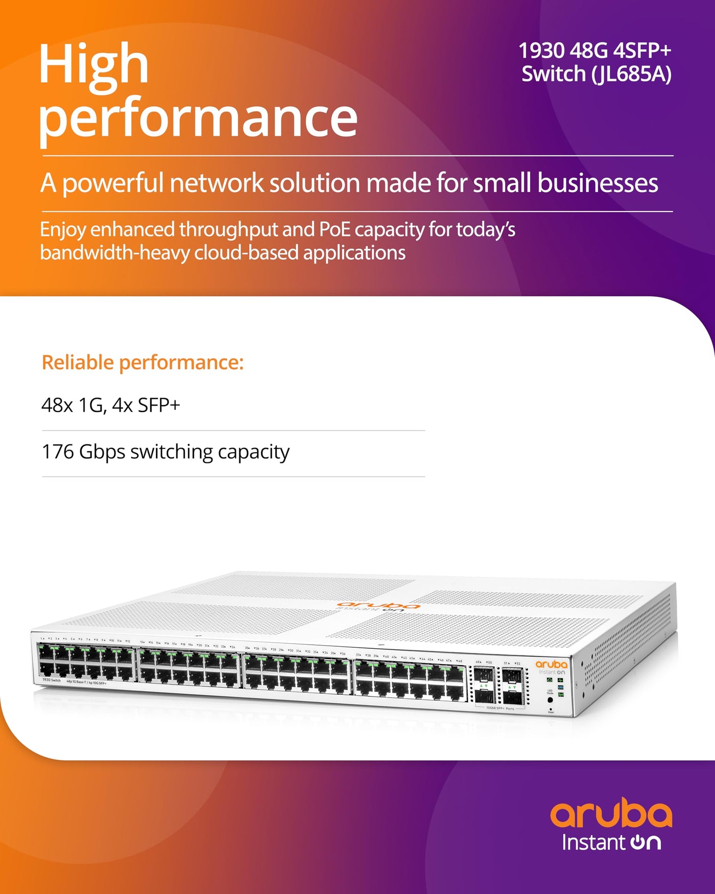Hpe Aruba Instant On 1930 48G 4Sfp/Sfp+ Switch Switch L2+ Managed 48 X 10/100/1000 + 4 X 1 Gigabit / 10 Gigabit Sfp+ Rack Mountable