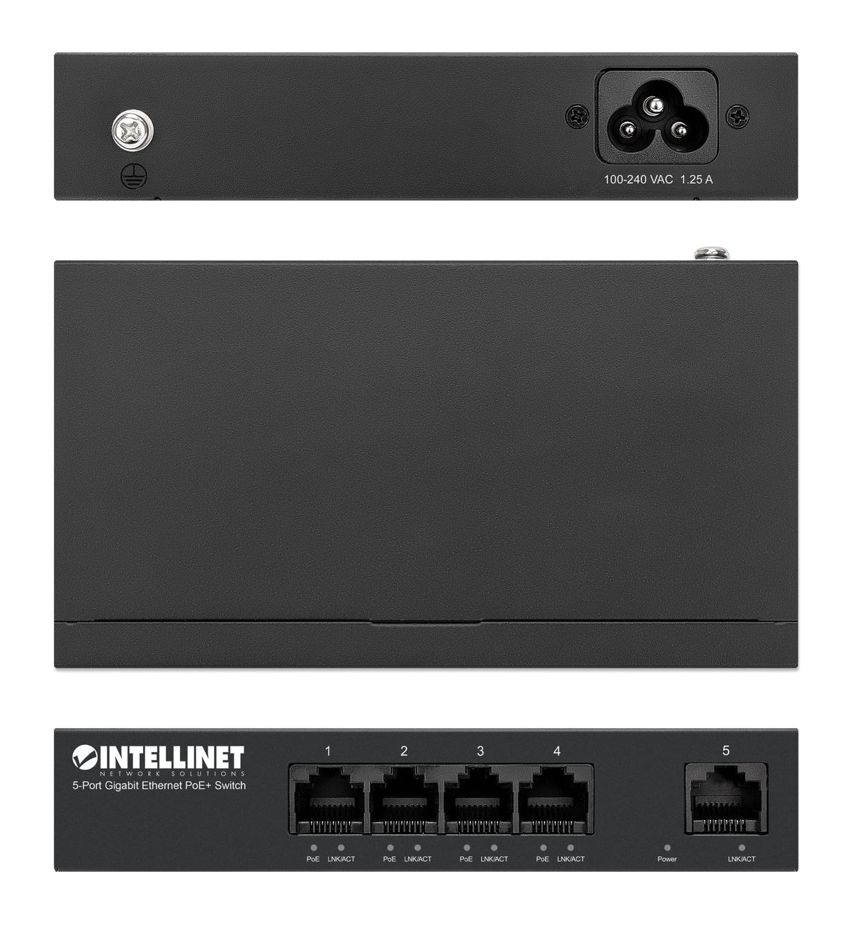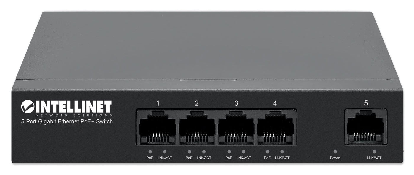 .The Intellinet Network Solutions 5-Port Gigabit Ethernet Poe+ Switch Passes Both Data And Electrical Power To A Number Of Poe-Compatible Devices Via Standard Cat5E Or Cat6 Network Cables. Equipped With Five Gigabit Ethernet Ports - Four Of Which Are High-Power Poe+ Pse Ports - This Switch Can Power Wireless Lan Access Points And Bridges, Voip Phones, Ip Video Cameras And More While Delivering Network Speeds Up To 1000 Mbps.