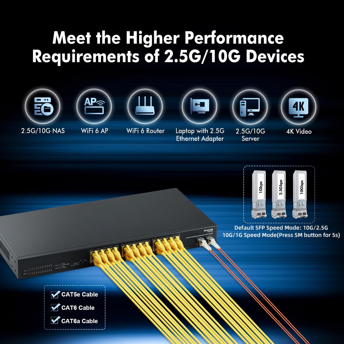 Mokerlink 24 Port 2.5G Ethernet Switch With 2X10G Sfp, 24 X 2.5G Base T Ports Compatible With 10/100/1000Mbps, Metal Unmanaged F