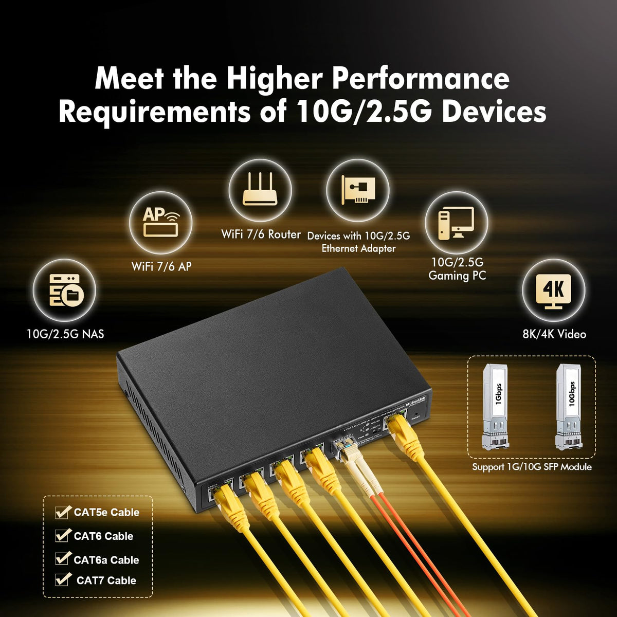 Mokerlink 4 Port 2.5G Ethernet Managed Switch, 1 Port 10G Ethernet, 1 Port 10G Sfp+ Slot, 4 X 2.5G Base T Ports Compatible With