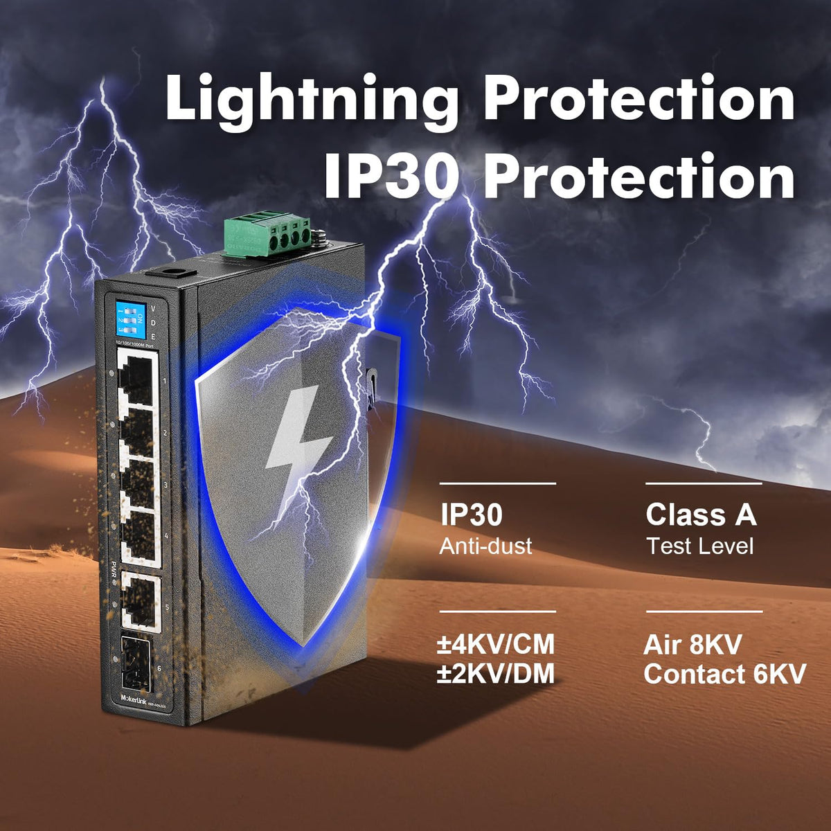 Mokerlink 6 Port Industrial Din Rail Gigabit Switch, 4 X 100/1000Mbps Ports And 1 Gigabit Uplink, 1 Gigabit Sfp, Metal Din-Rail & Wall Mount Ethernet Switch