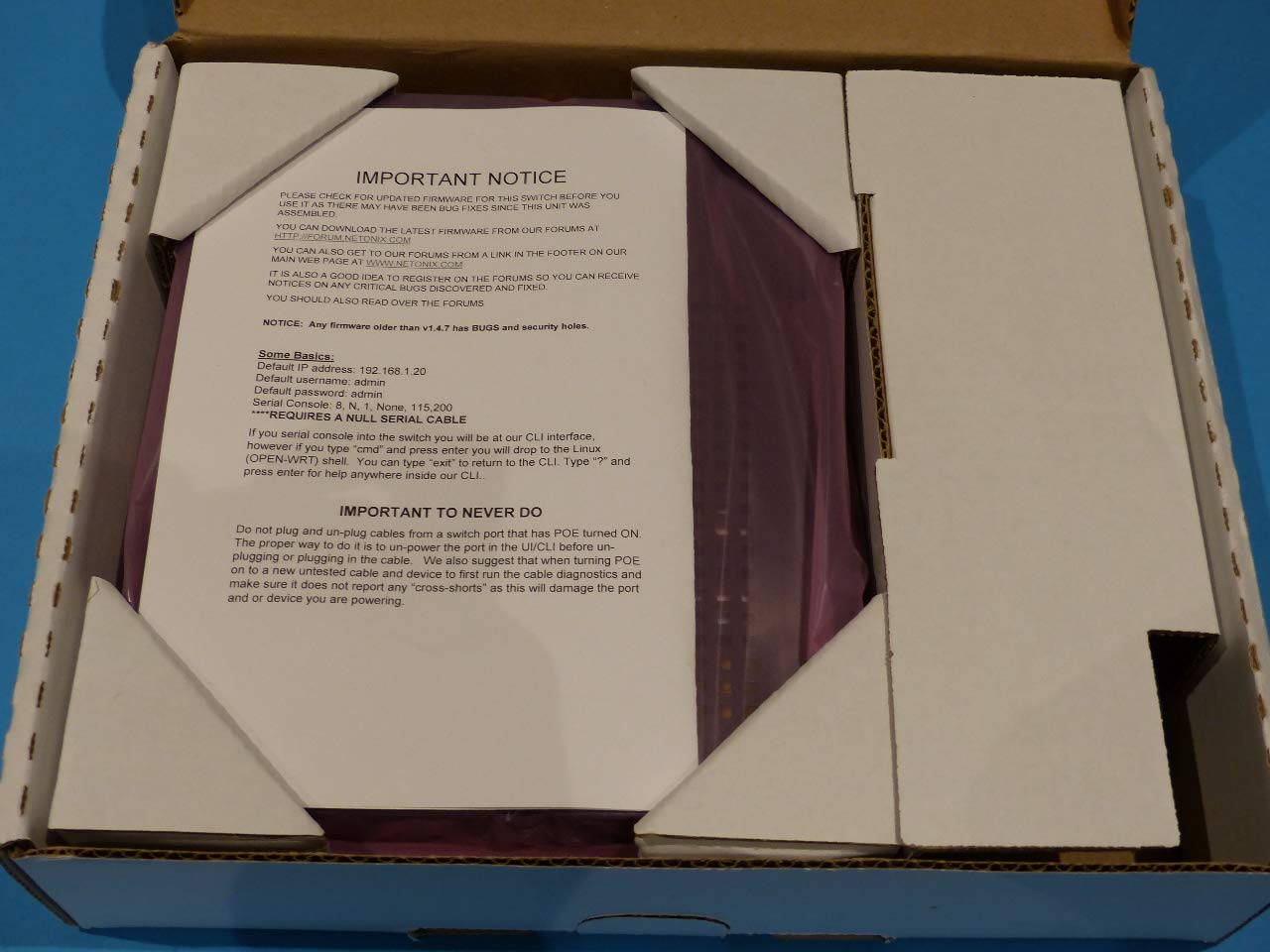 Q: Can the Netonix WS-12-250-AC be used with other networking equipment?A: Yes, the Netonix WS-12-250-AC is compatible with various networking equipment, allowing for seamless integration into existing network infrastructures, especially with other PoE devices.