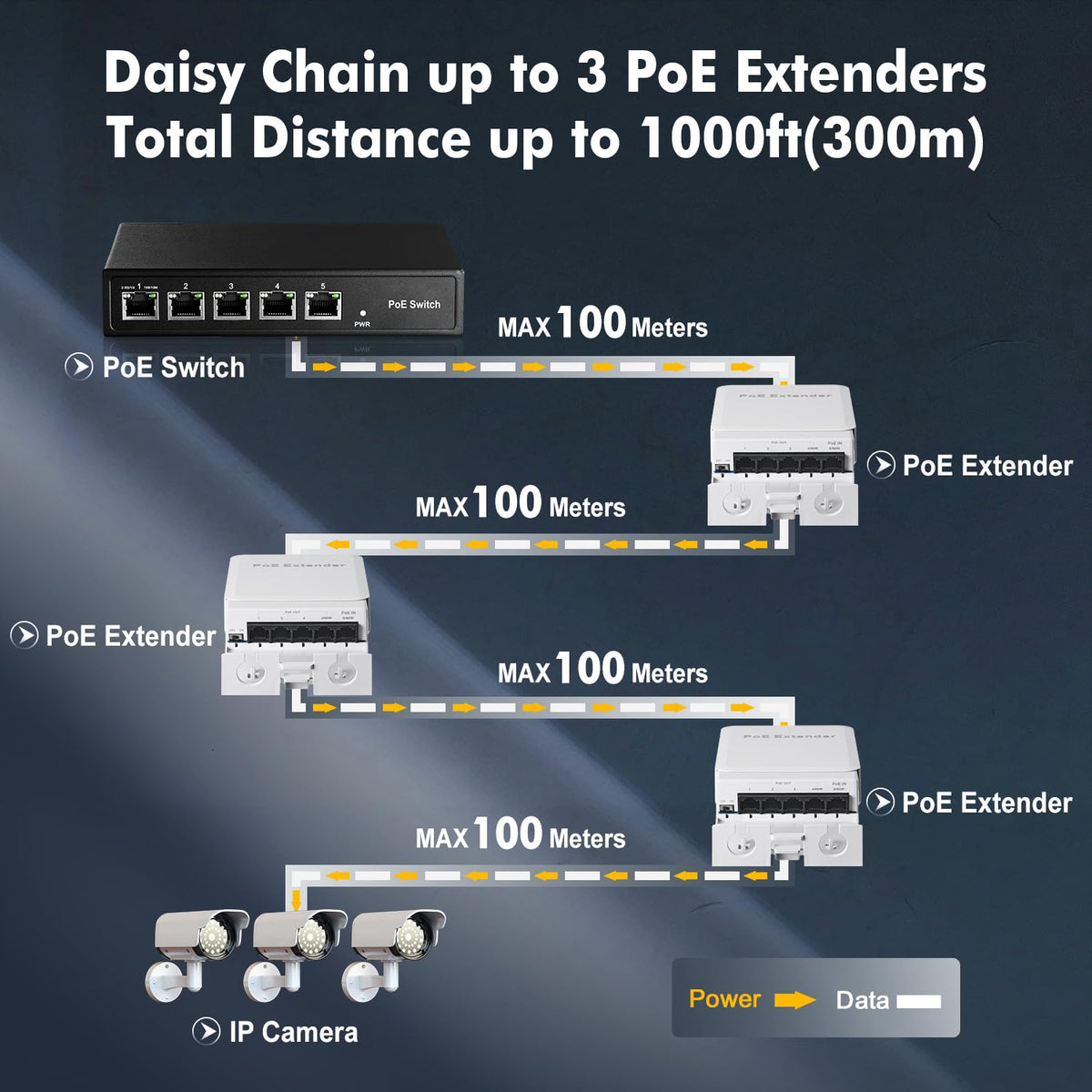Outdoor Poe Passthrough Switch, 1 Poe In 4 Poe Out Extender, Ieee802.3Af/At/Bt Poe Powered 90W, 100Mbps Ethernet, Wall Mount Waterproof Plug And Play
