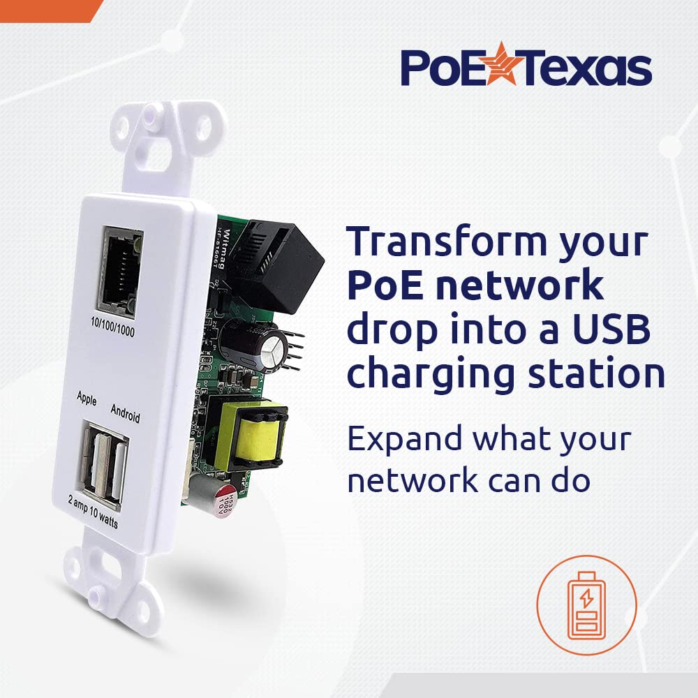 In-Wall Poe Splitter With Gigabit Data Port And Two Usb Charging Portsperfect For Integrating Usb Charging Into Your Home Or Office. Easily Convert A Regular Outlet Into A Usb Charging And Network Data Outlet. Utilize Power Over Ethernet Technology To Extend Power To This 5 Volt Wall Outlet Near Your Office Desk, In Your Kitchen Or Living Areas, Or Anywhere You Need A Convenient Charging Station. Save Money By Using The Gaf-Usb2 In-Wall Outlet; It Can Easily Be Integrated Into Your Space For A Fraction Of The Cost Of Installing A Traditional 120 Vac Outlet.Product Features: Simple, Cost Effective Solution For Installing A Usb Charging Station Where You Need It In-Wall Option Provides A Clean Look And Integrates Into Your Home Or Office Space Power The Outlet Via Poe From Up To 328 Feet Away Output 5 Volts, 10 Watts On The Usb Port - Outlets Configured For Fast Charging 10/100/1000 Gigabit Data On The Rj45 Outlet Compatible With A Mode A (Pins -1,2 +3,6) Ieee 802.3Af Injector Or Switch (Try Gpoe-1A-48V15W-One Or Gpoe-4A-48V48W)Simple, Reliable, And Supported By Experts. We Design Our Power Over Ethernet Solutions For Simple Installation And Long Life, But Sometimes Things Go Wrong. Thats Why Expert Help Is Only A Phone Call Away. All Of Our Poe Products Are Backed With A 1-Year Replacement Warranty And 30-Day No Questions Asked Return Policy.
