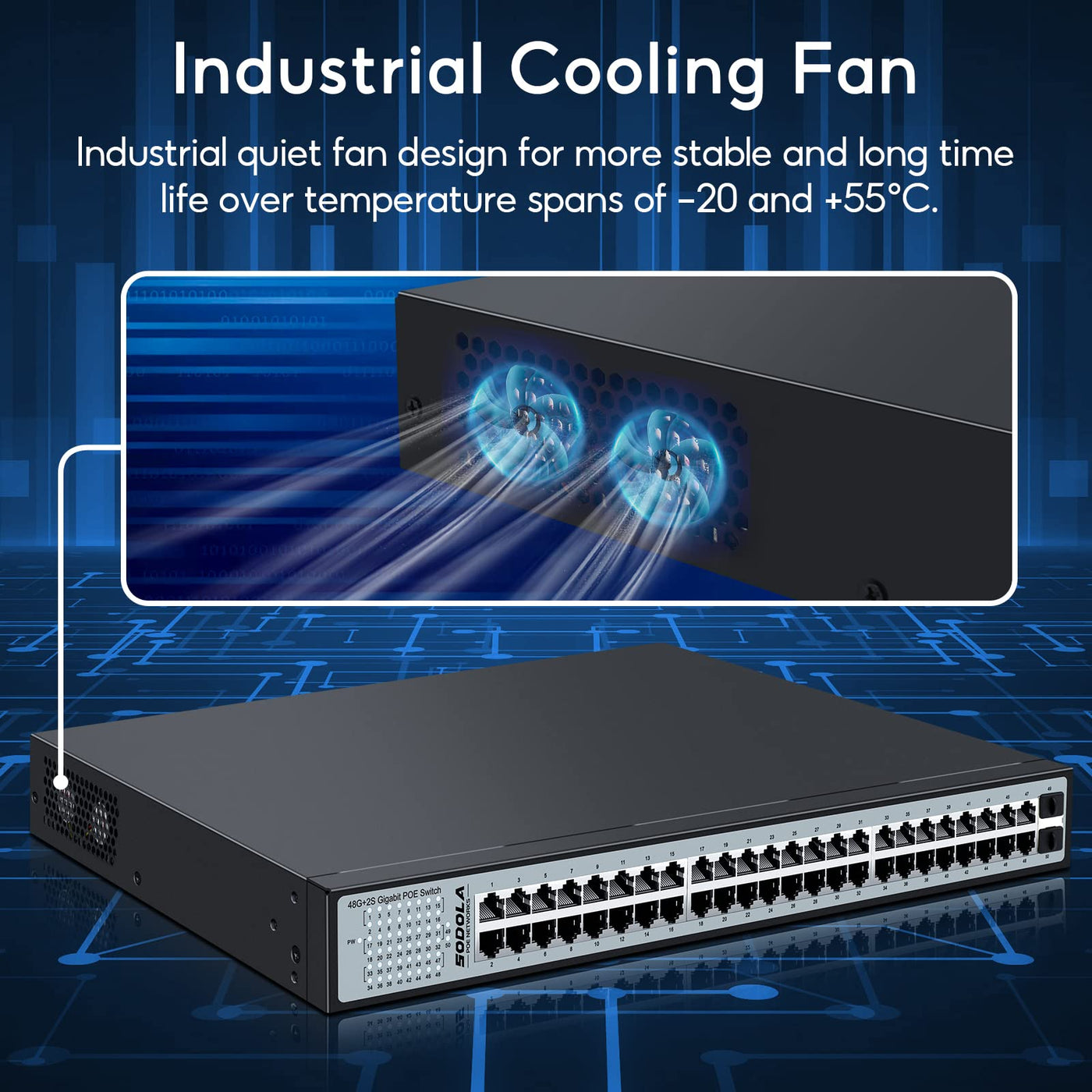 Q: Can I use this switch in a small office environment?A: Absolutely! The SODOLA 48 Port Gigabit PoE Switch is designed for businesses of all sizes, including small offices, providing a reliable networking solution that meets the demands of various devices and applications.