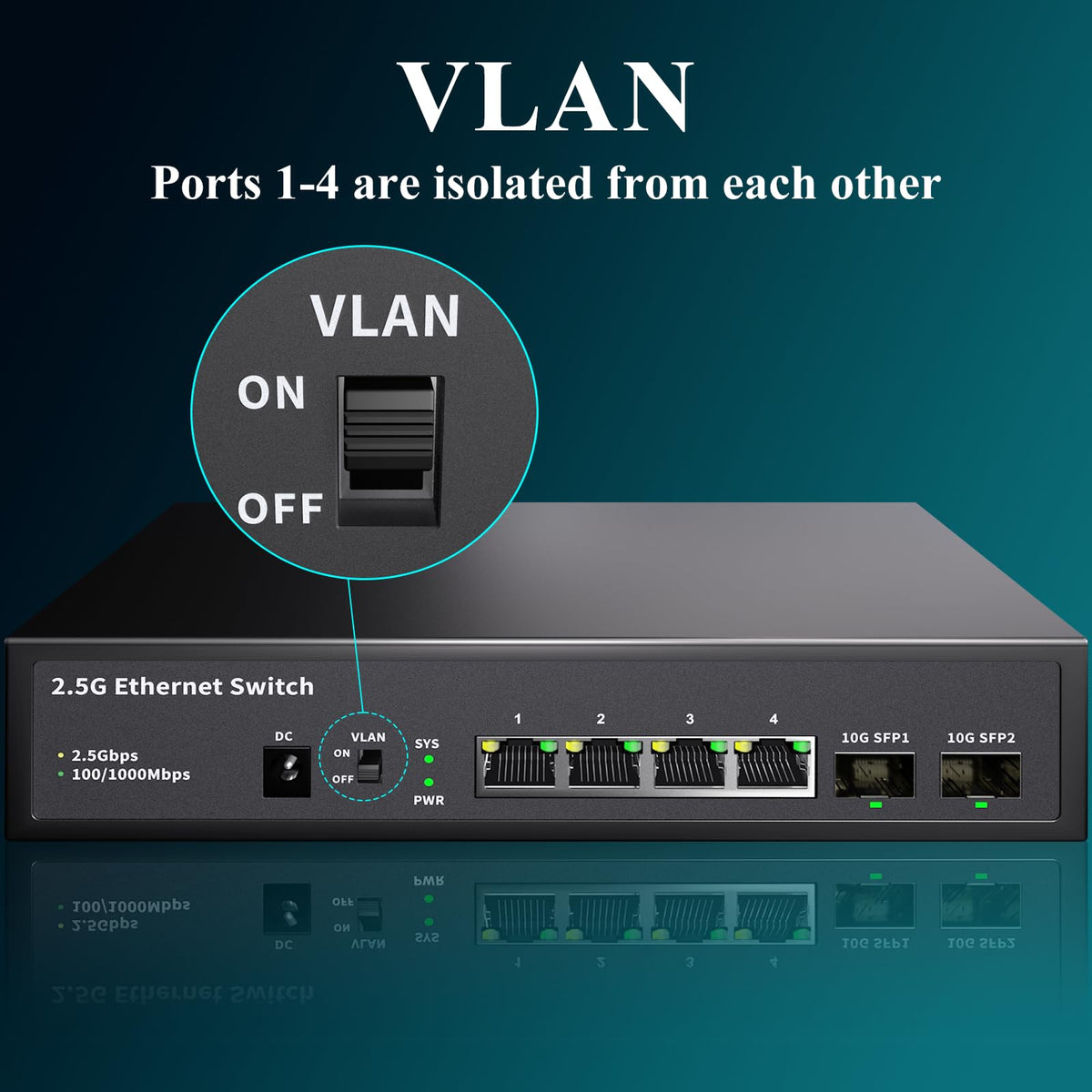 This 2.5 Gigabit Switch Features 4X 2.5G Rj45 Ports And 2X 10G Sfp Port, Providing Higher-Speed Connectivity For Your Devices And Allowing You To Easily Upgrade Your Network To Support The Latest 2.5G Ethernet Standard.