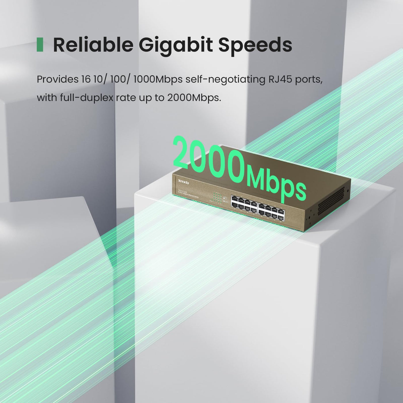Tenda Teg1016D, Unmanaged 16 Port Gigabit Switch, Rackmount Ethernet Switch, Plug & Play, Fanless & Metal Design Network Switch,