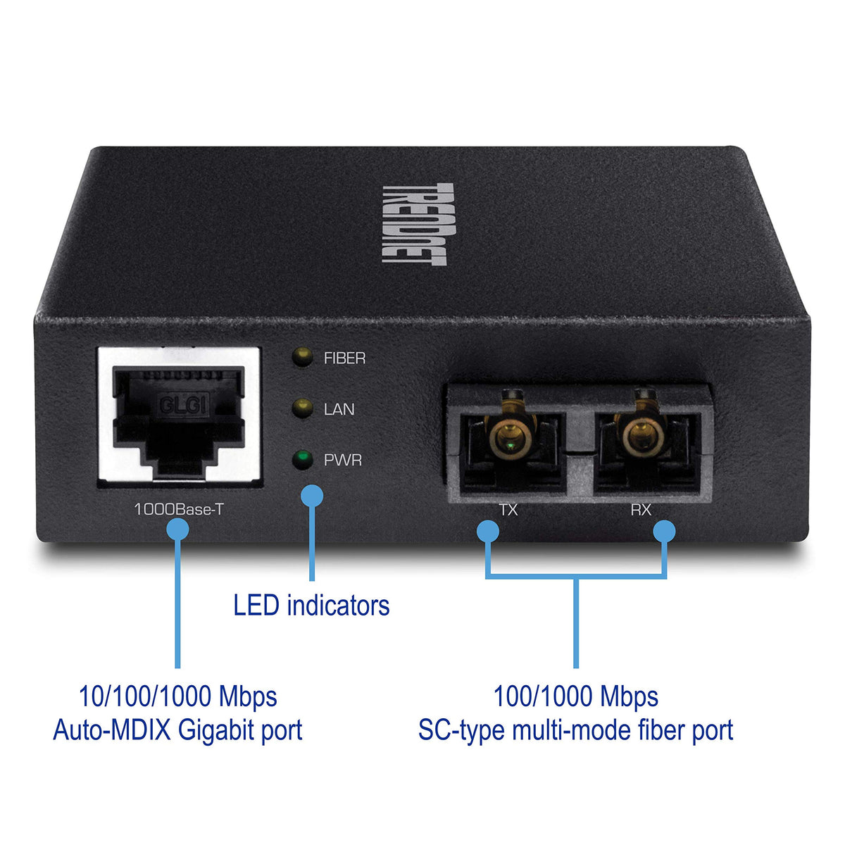Trendnet 1000Base T To 1000Base Sx Multi Mode Sc Fiber Converter, Up To 550M (1800 Ft.), 2 Gbps Switching Capacity, Tfc Gmsc