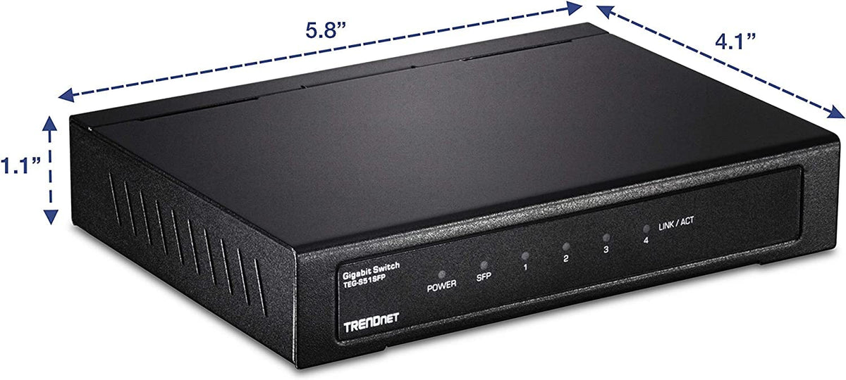 Trendnet 5 Port Gigabit Compact Metal Desktop Switch With Sfp Slot, Teg S51Sfp , Fanless Design, Wall Mountable, Lifetime Protection, Black